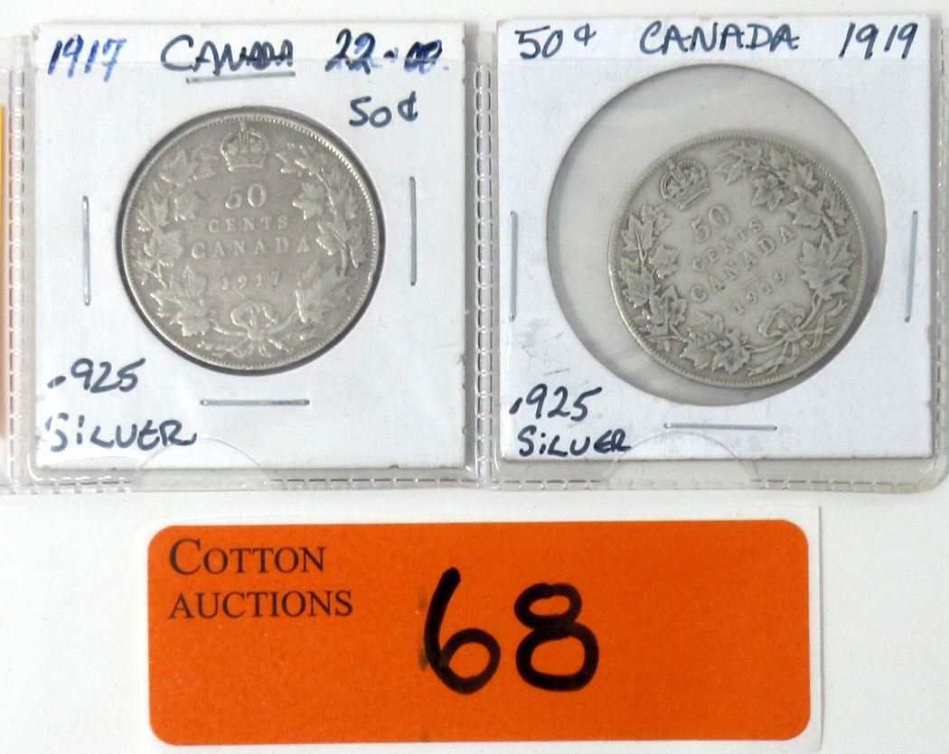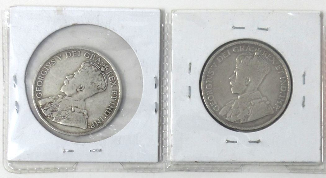 2 Vintage Canadian Sterling Silver 50¢ Coins