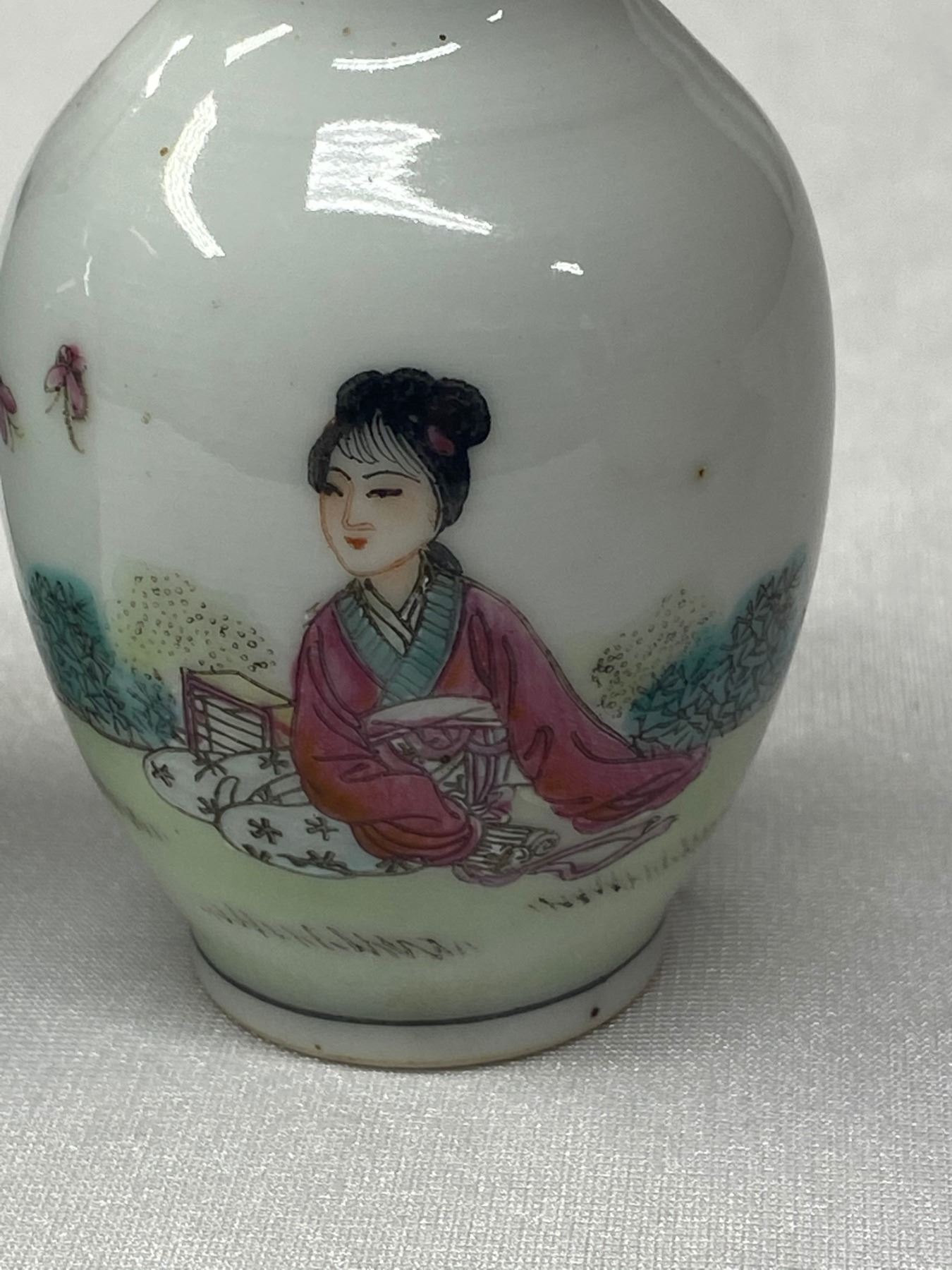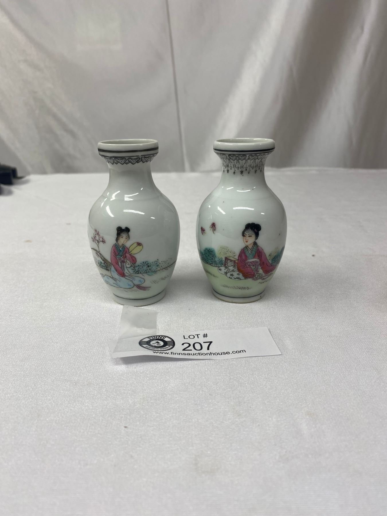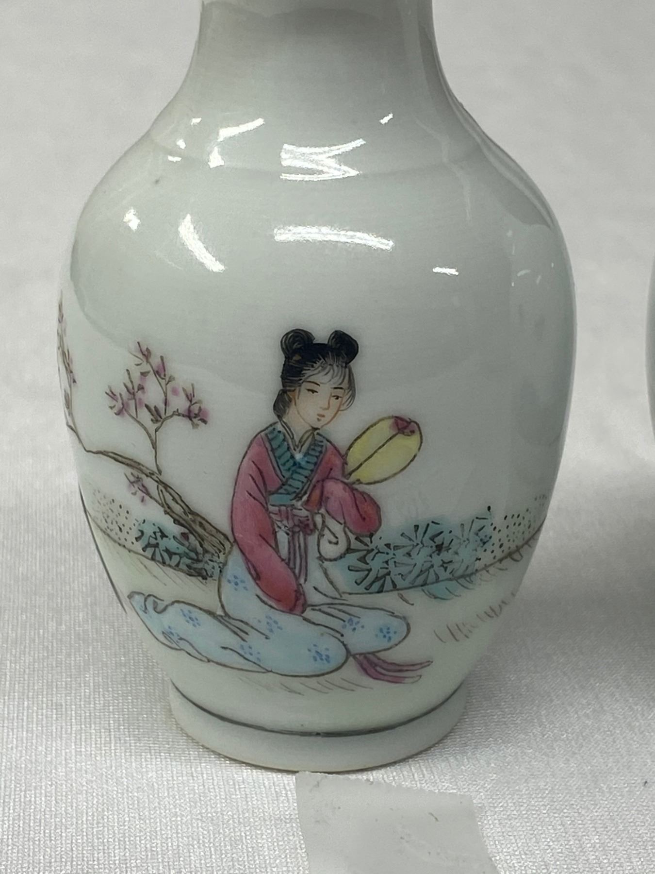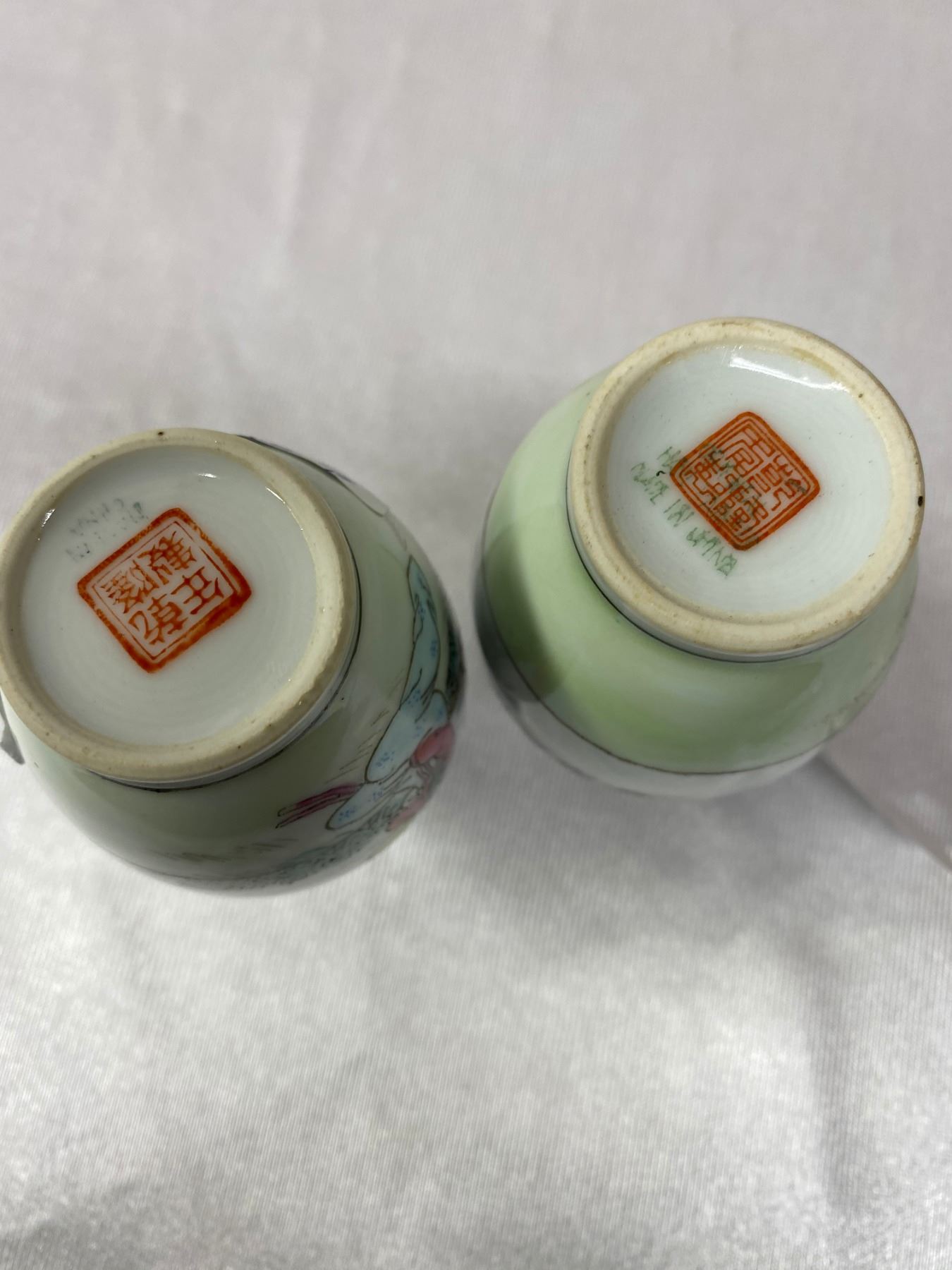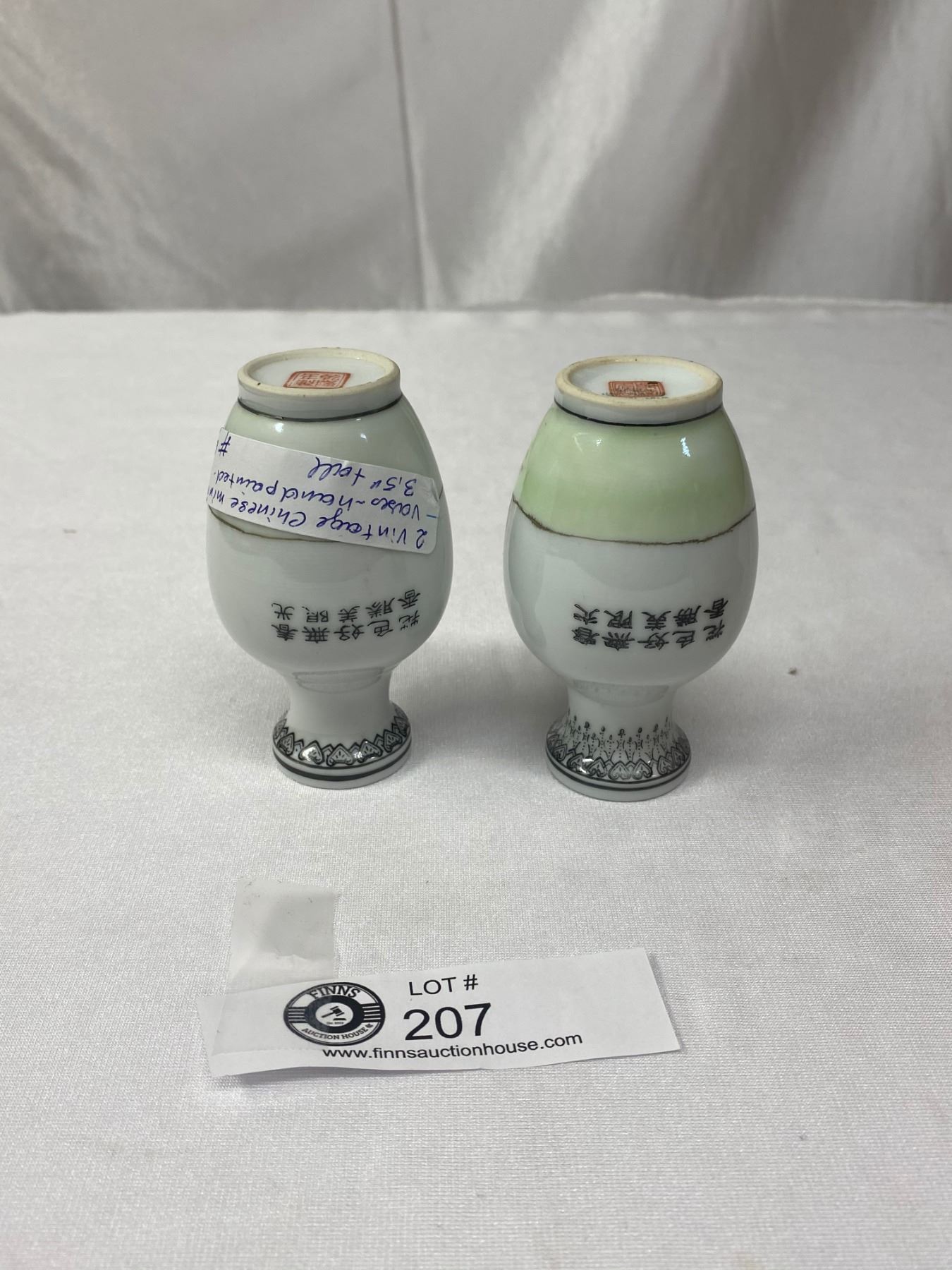 2 Vintage Chinese Miniature Vases Hand Painted, 3.5"T