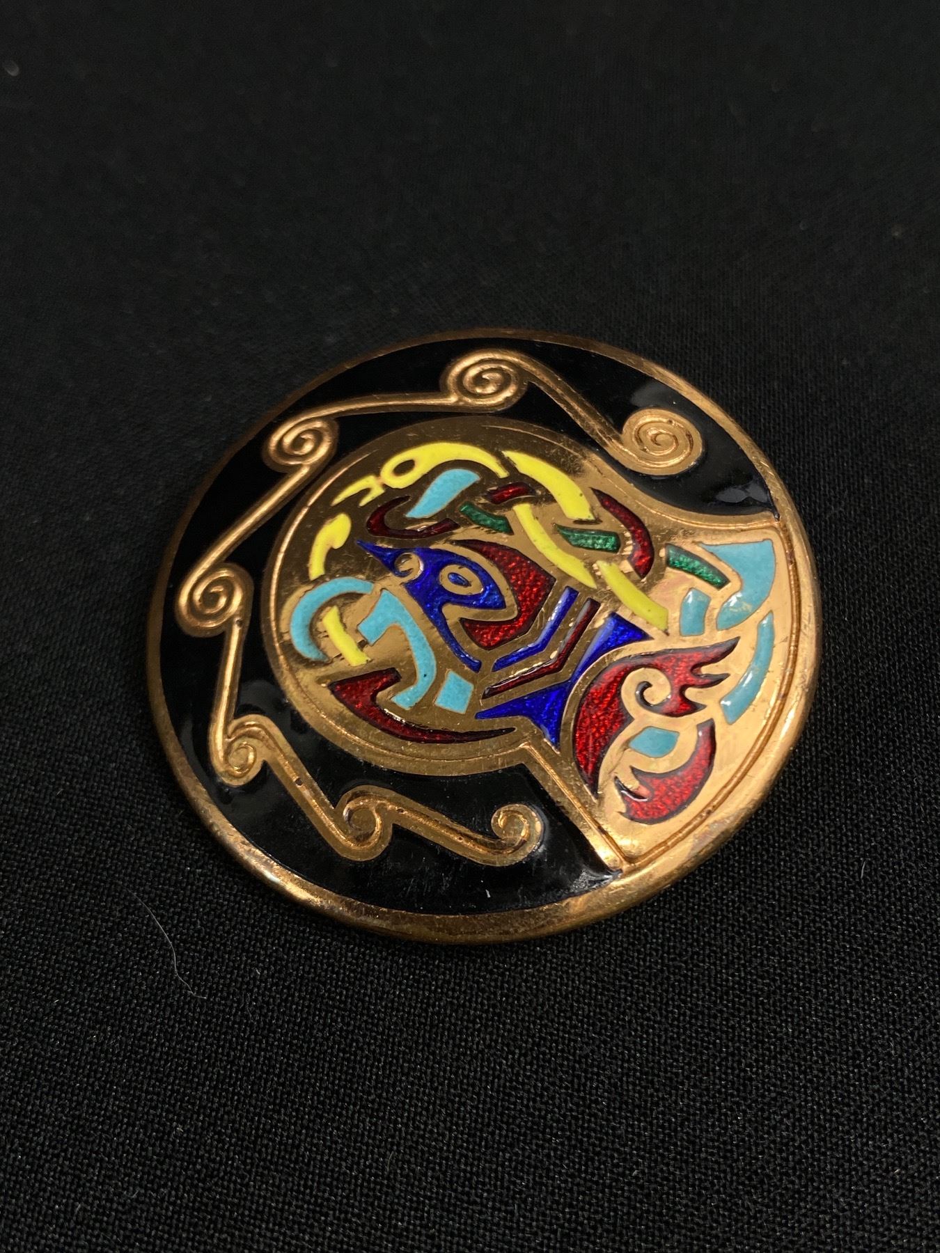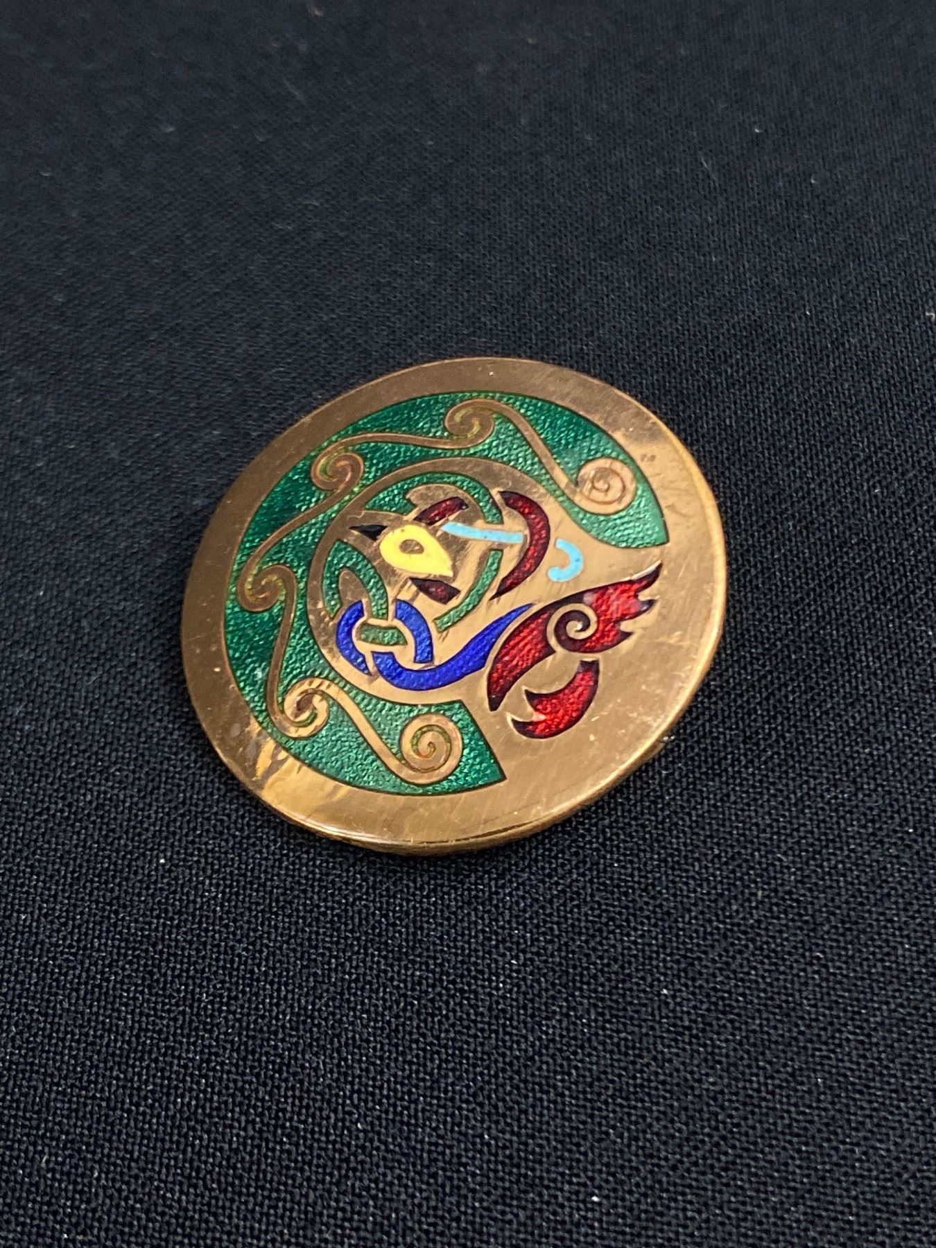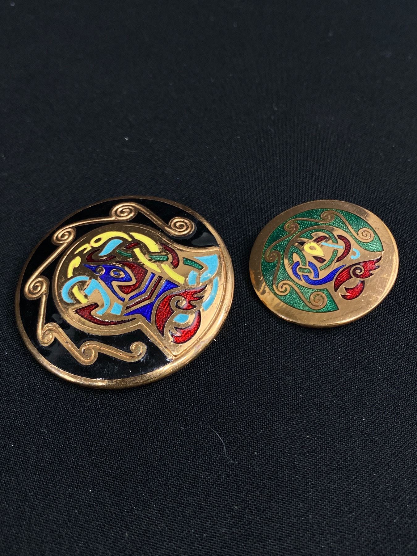 2 Vintage Copper Brooches w/Inlaid Enamel Design