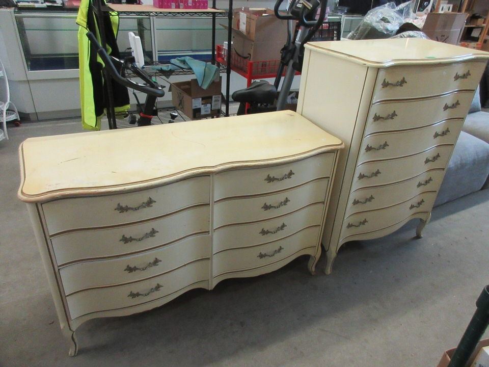 6 Drawer high boy measures 20" x 33" x 46" tall. 8 Drawer dresser measures 19" x 51" x 32" tall.