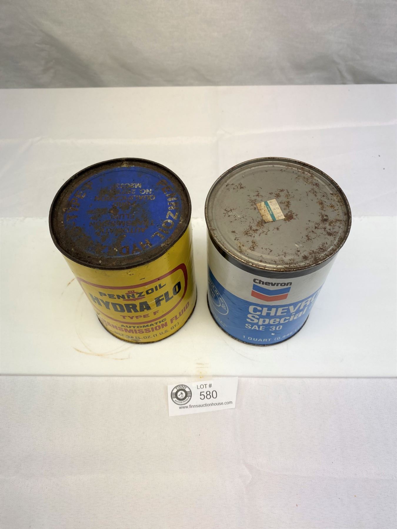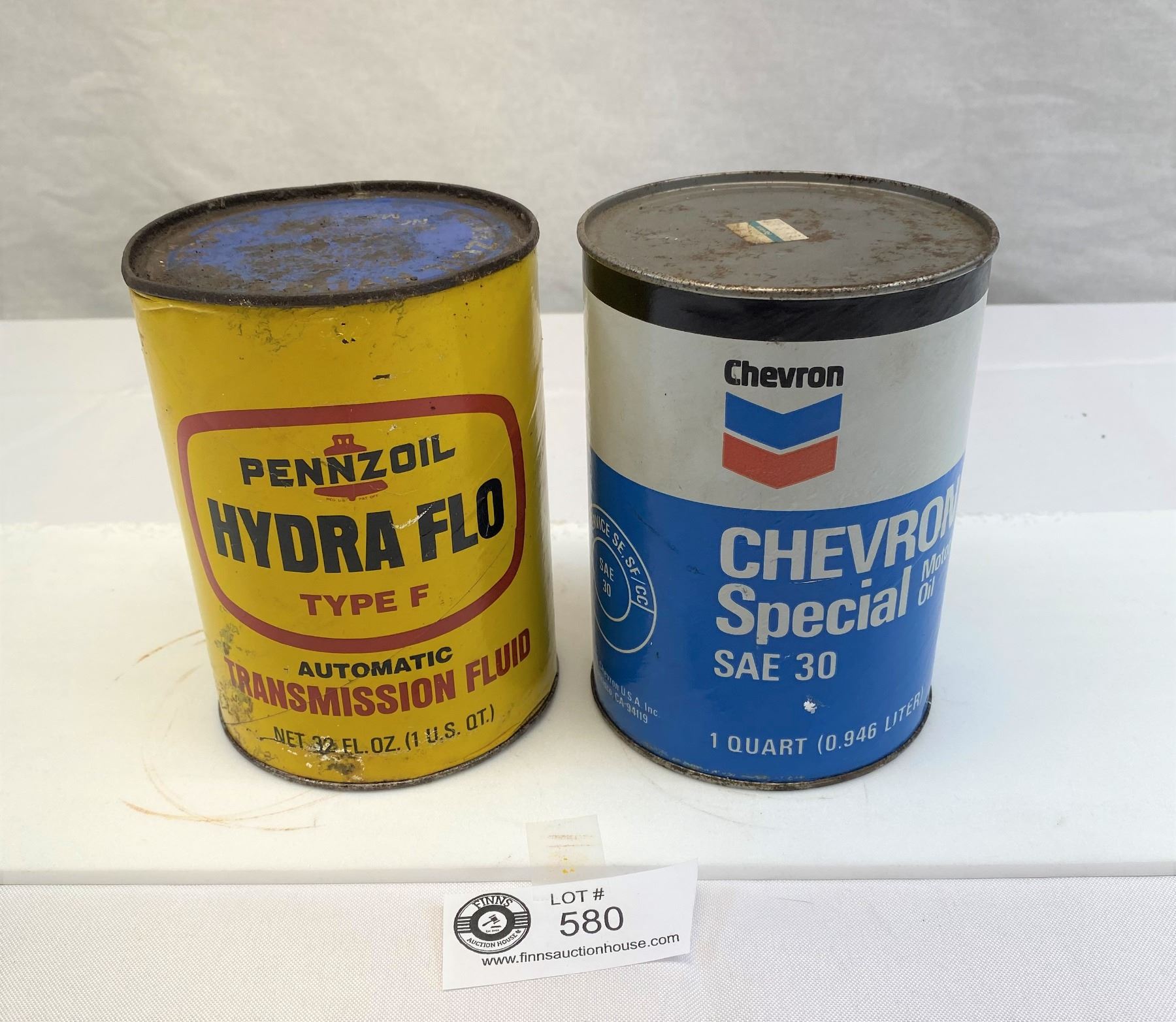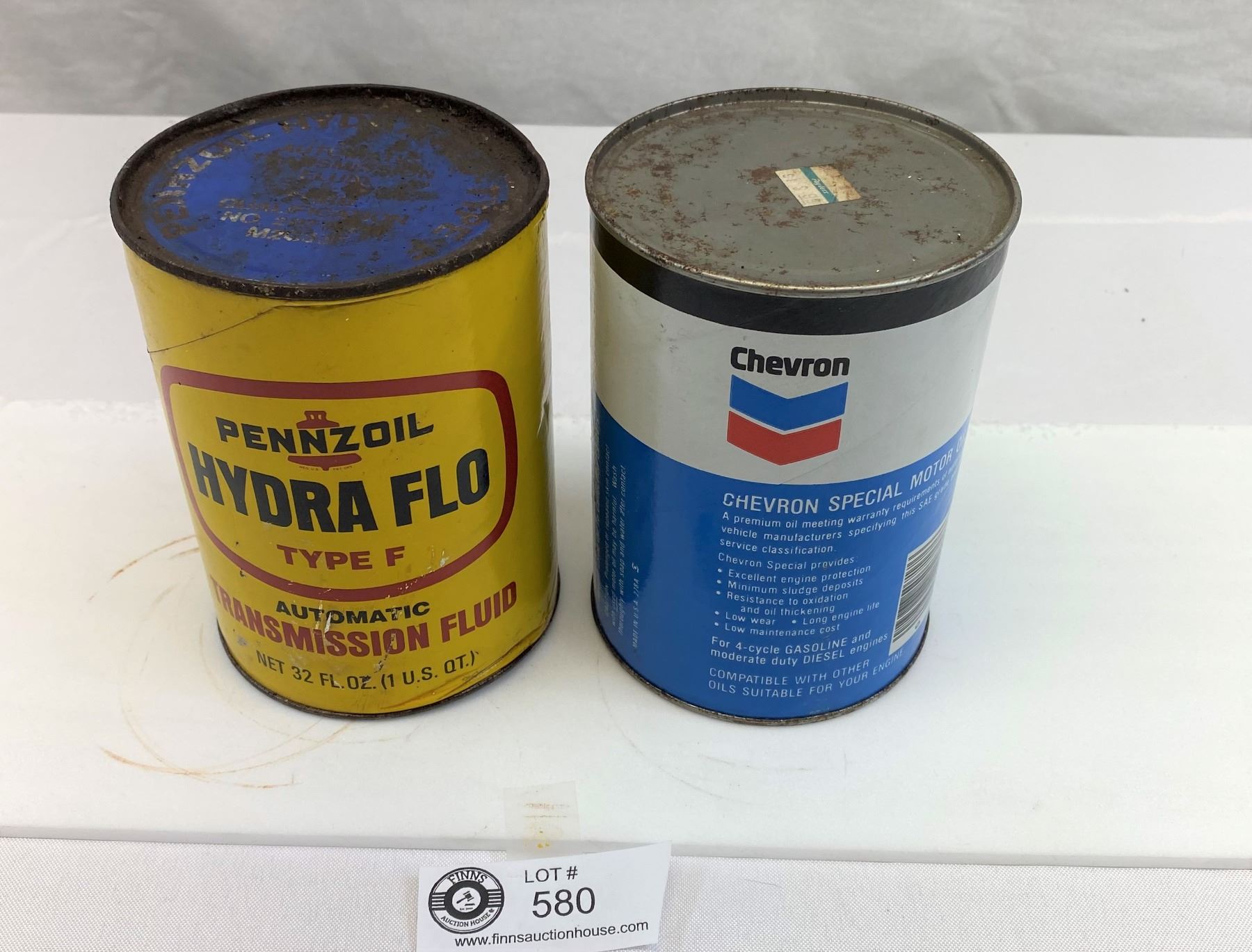 2 Vintage Full Oil Cans, Pennzoil And Chevron Motor Oil Can