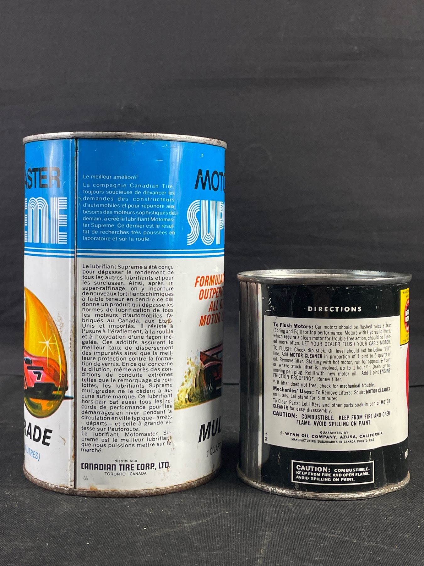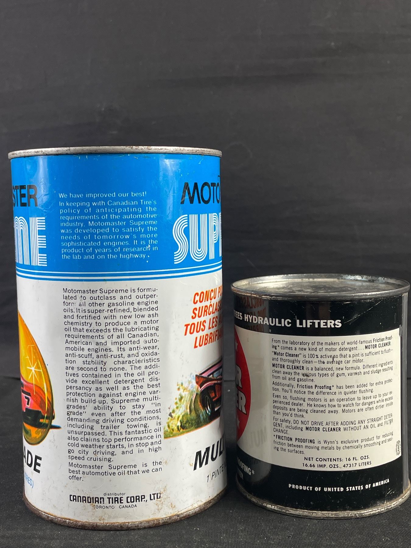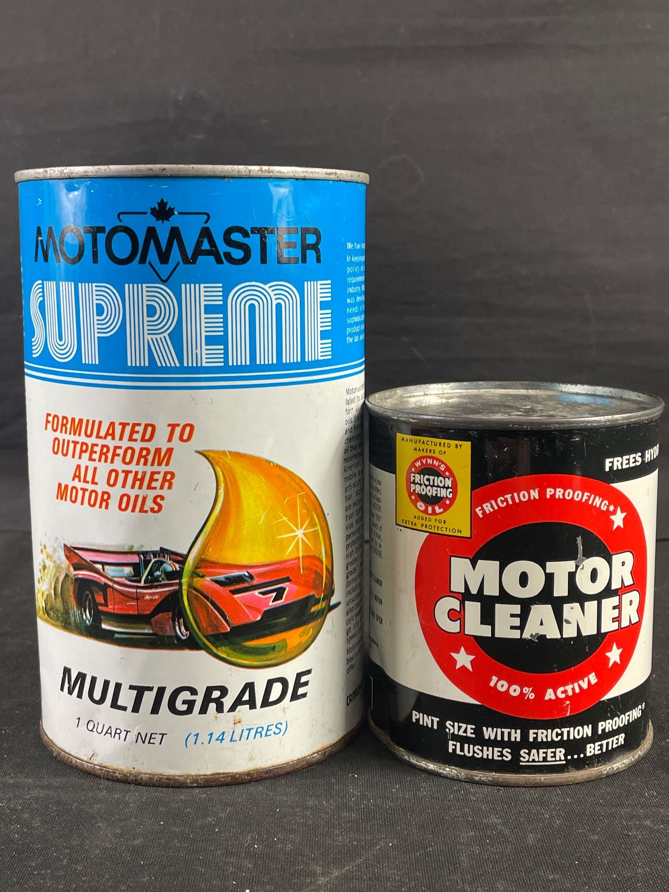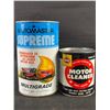2 Vintage Garage Tins - 1 Qt. Motor Master Supreme & Full 16 Fl.Oz. Motor Cleaner