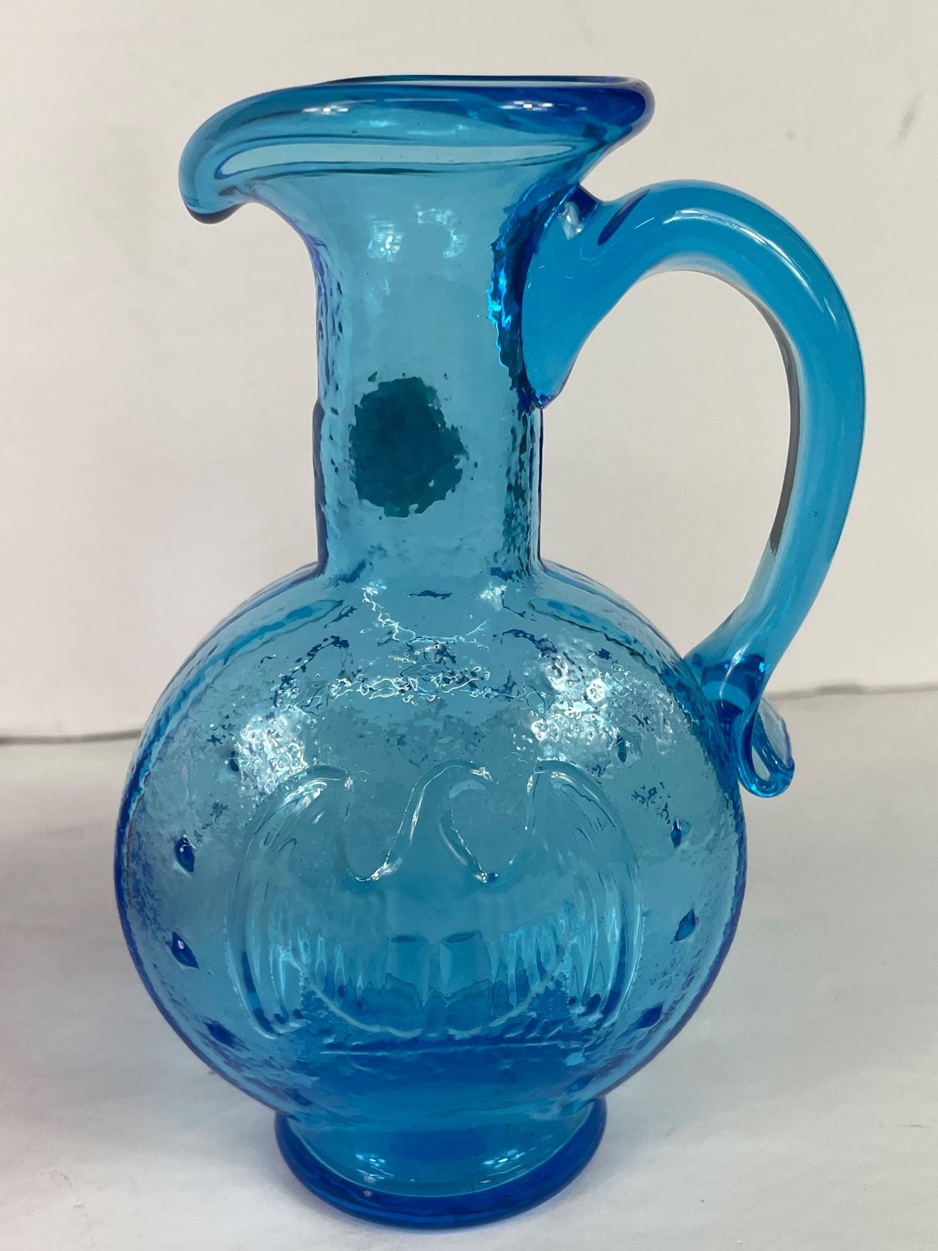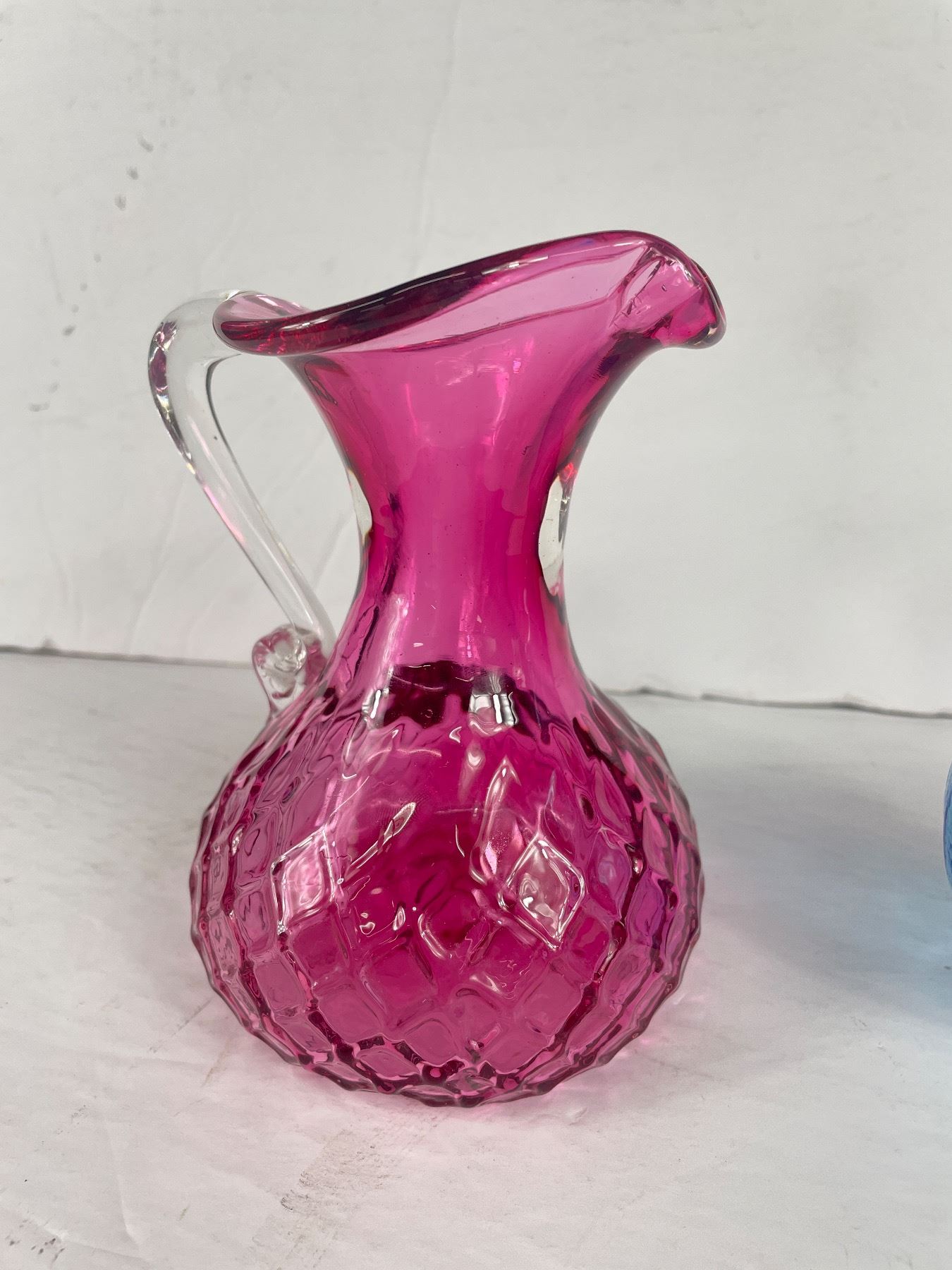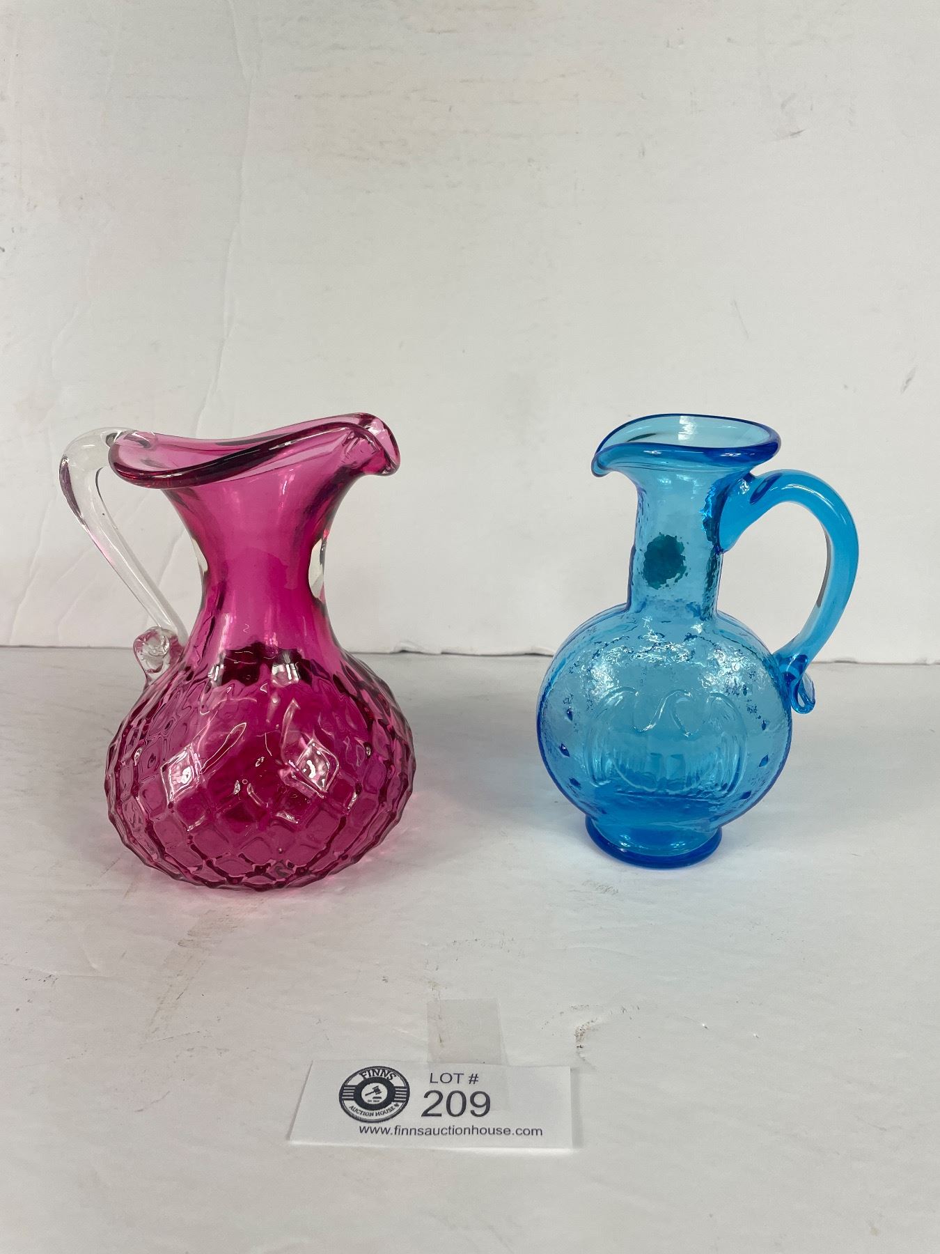 2 Vintage Glass Jugs, Cranberry Glass & Blue w/Eagle. Kanawha,Dunbar. No Chips Or Cracks