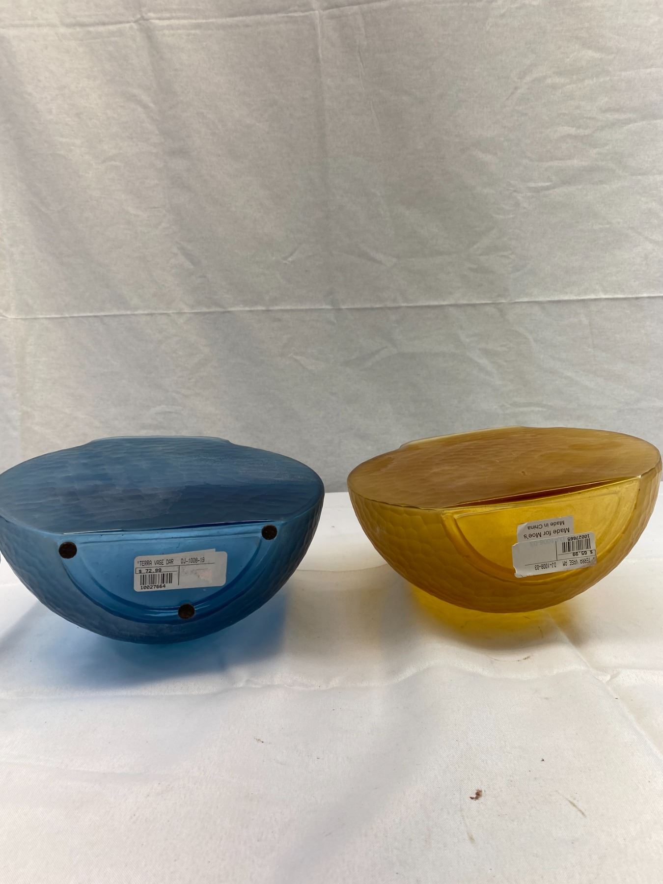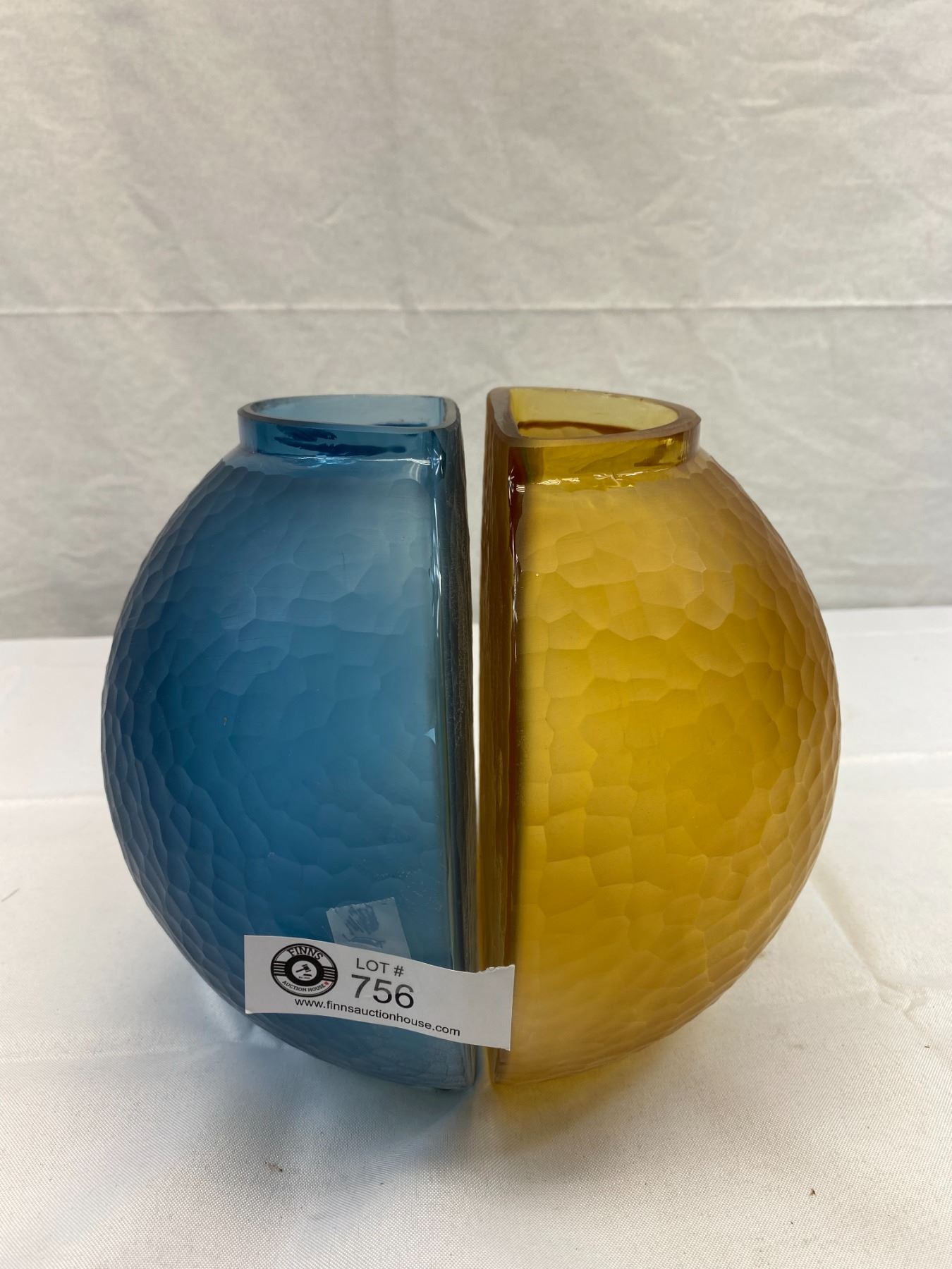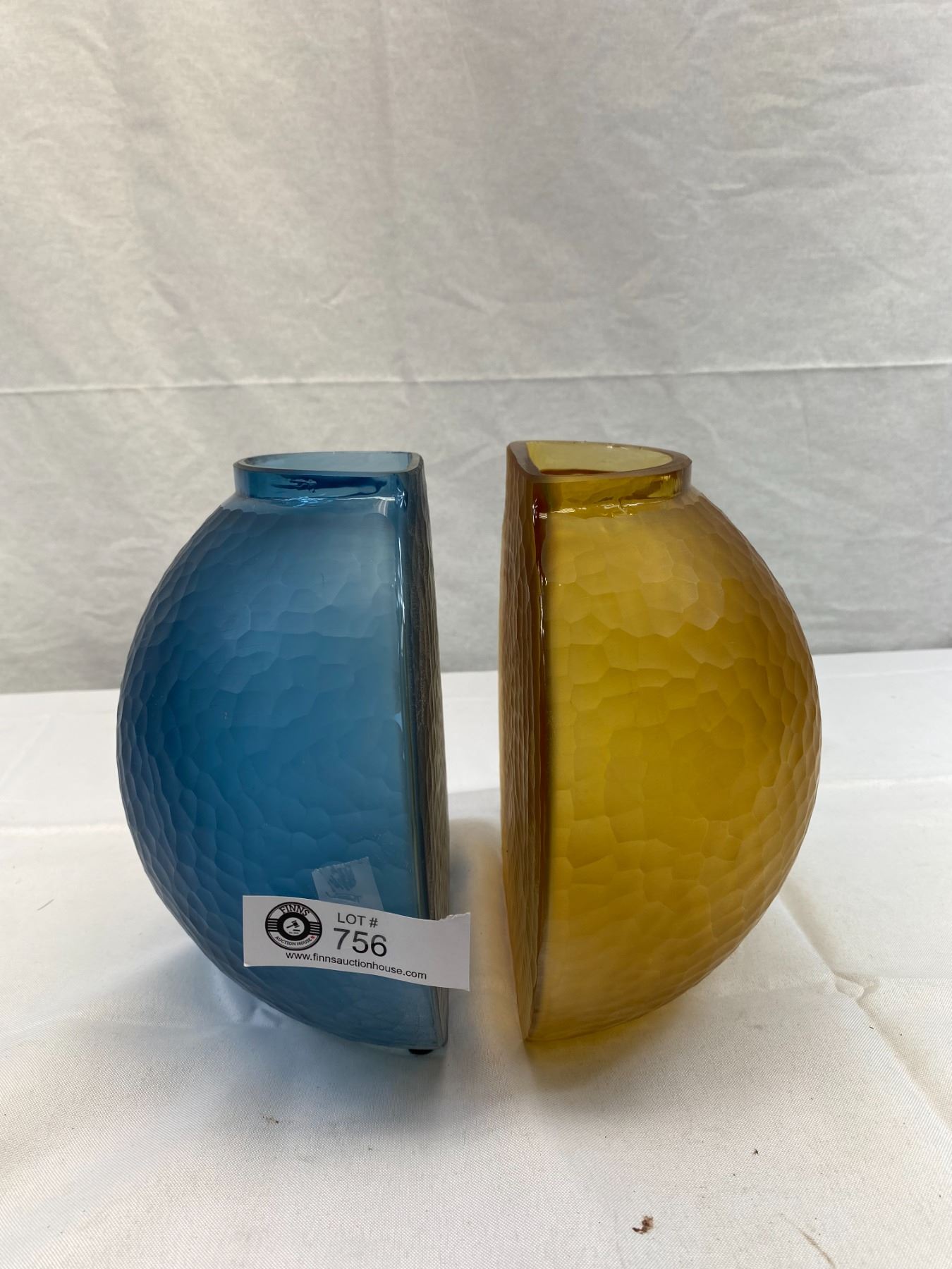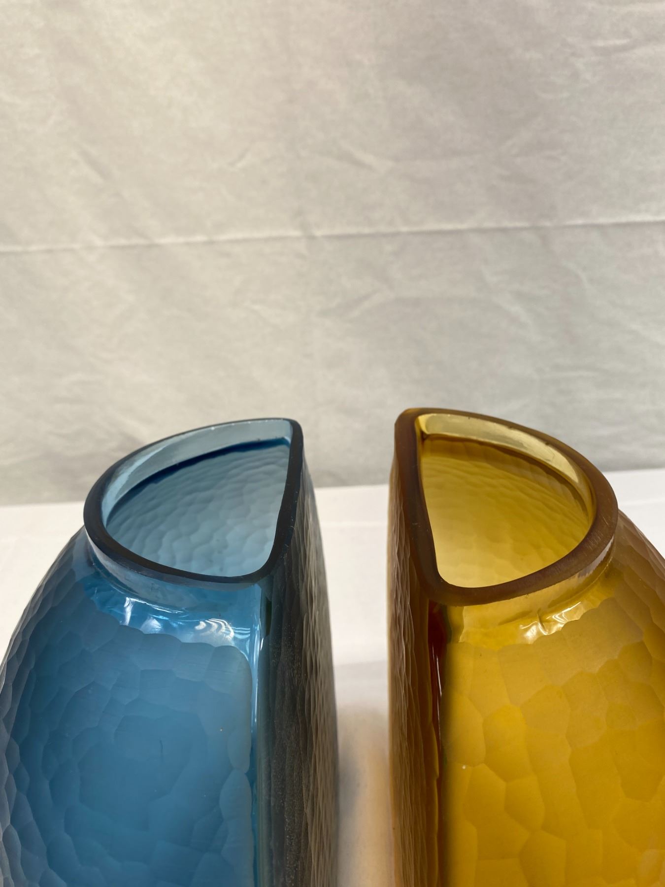2 Vintage Half Moon Terra Vase, 1 Blue Other Is Amber