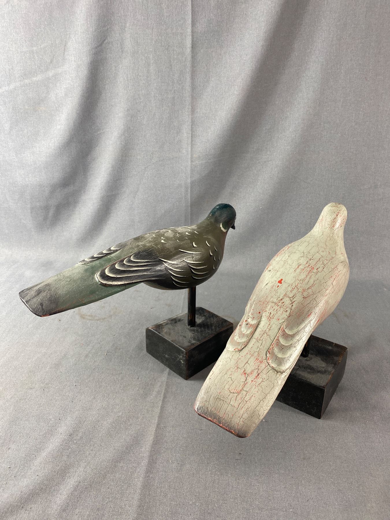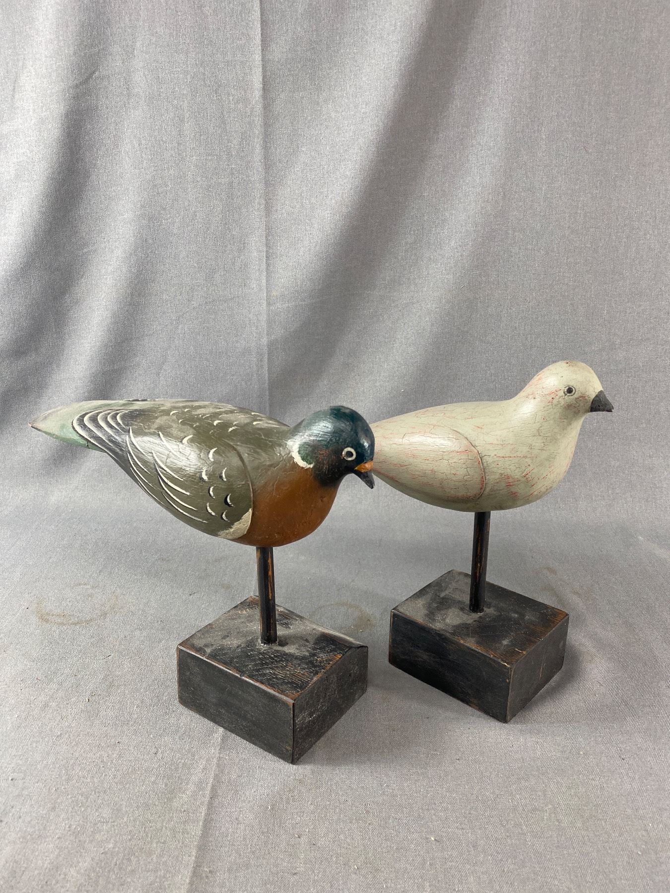 2 Vintage Hand Carved & Painted Wood Seagulls On Wood Base. Approx. 10 1/4" H