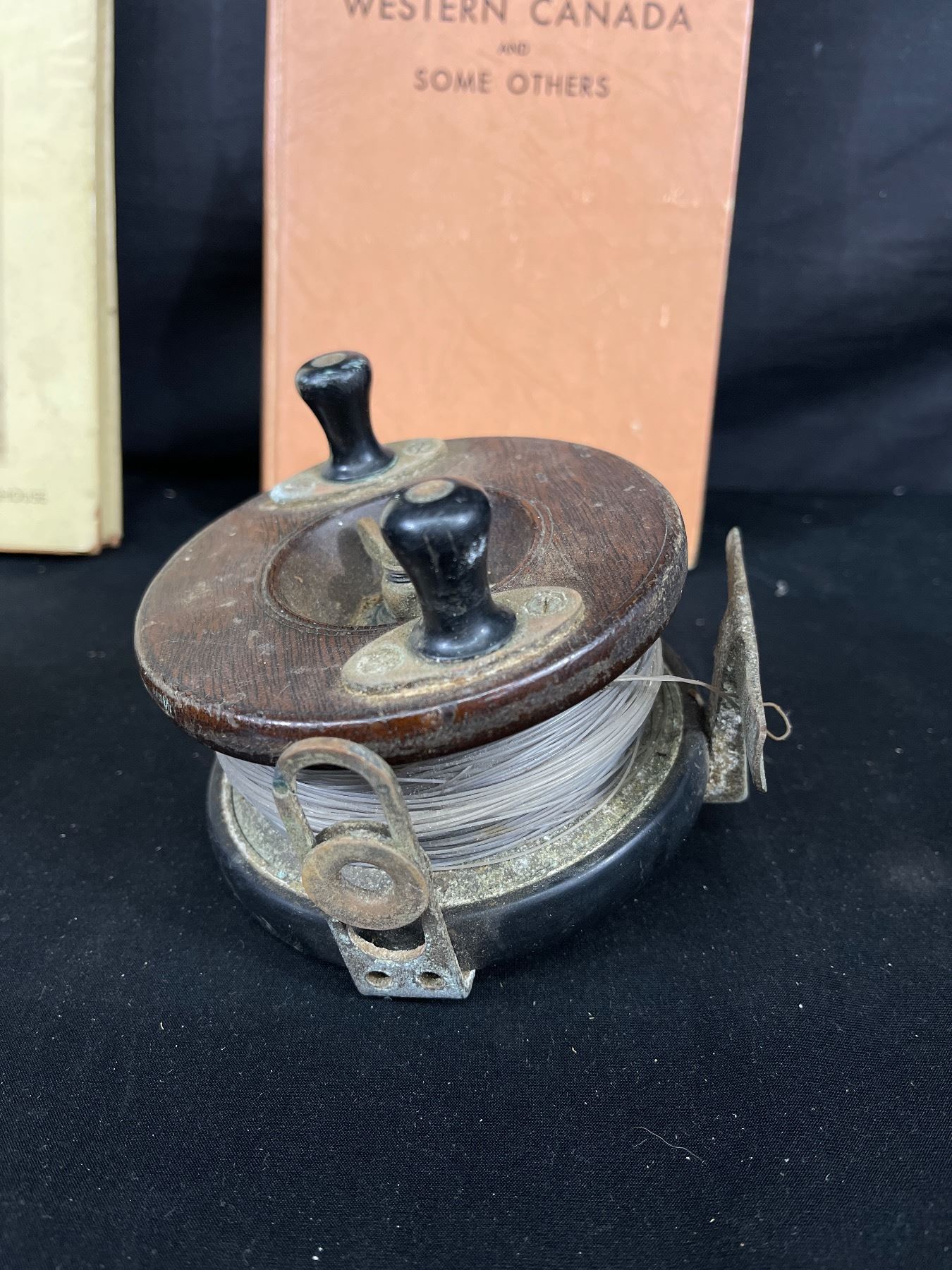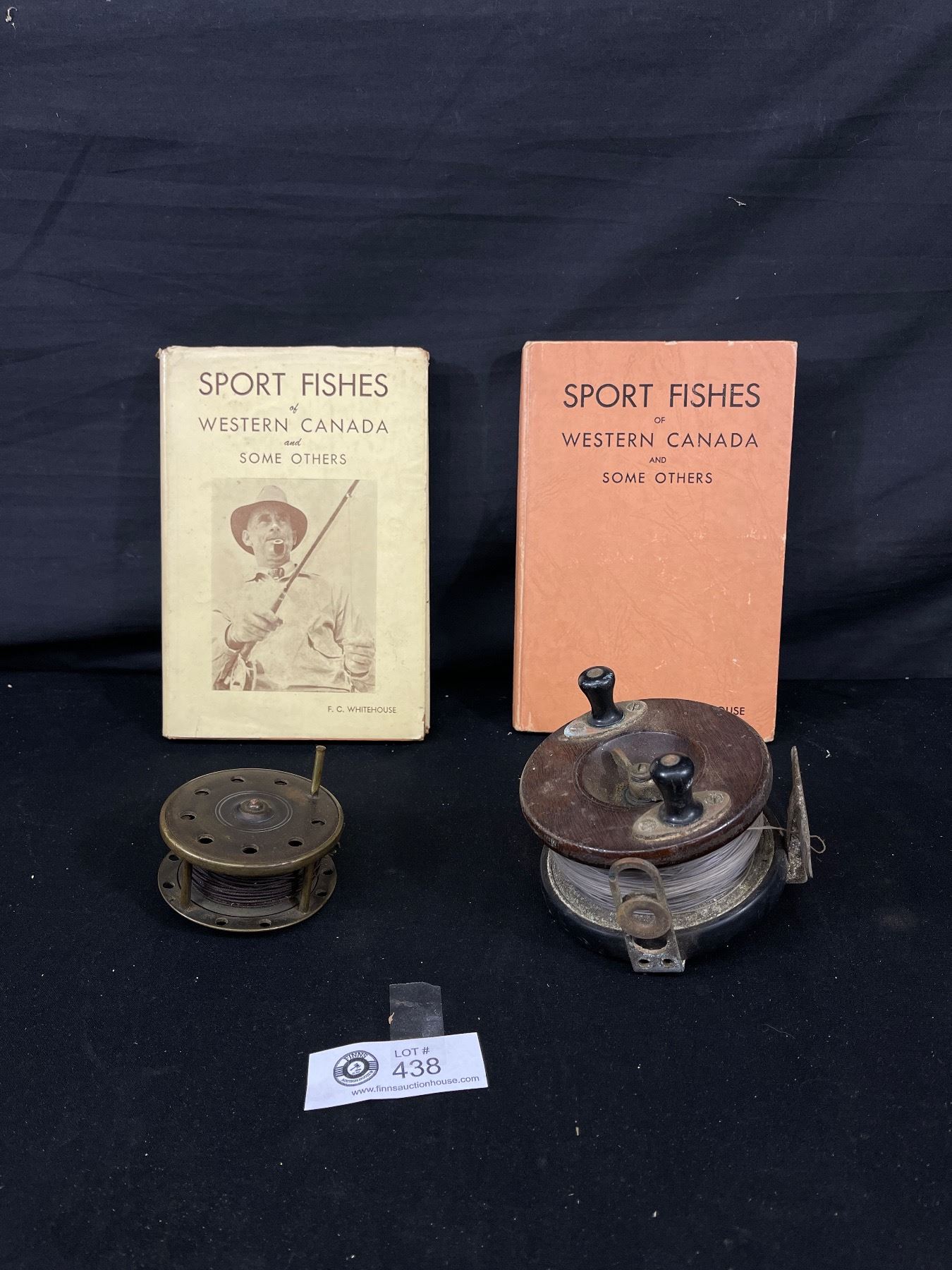 2 Vintage Hardcover Books on Western Canada Sport Fishing + 2 Reels