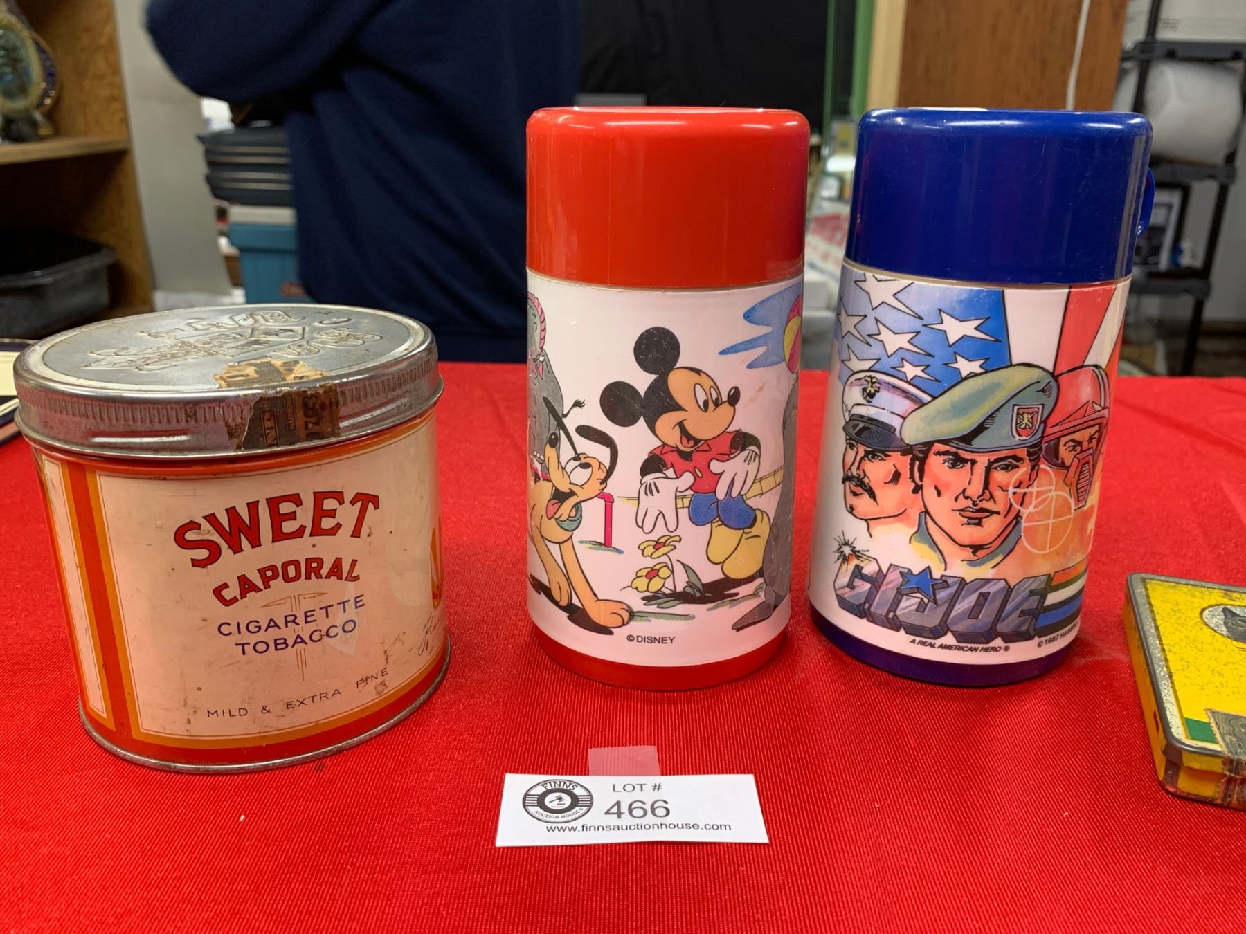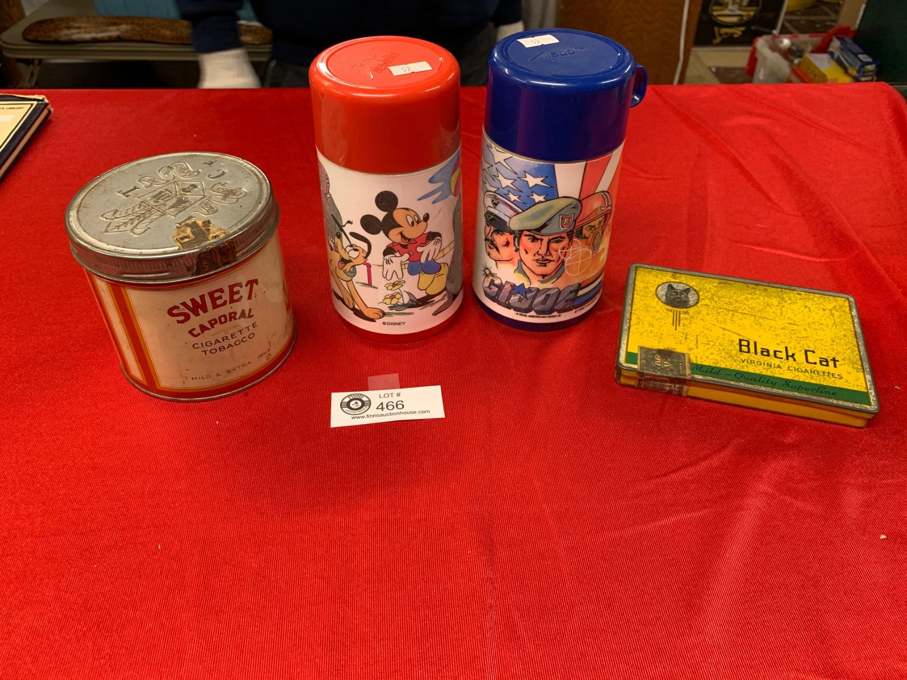2 Vintage Kids Thermoses GI Joe and Mickey Mouse, Plus 2 Tobacco Tins