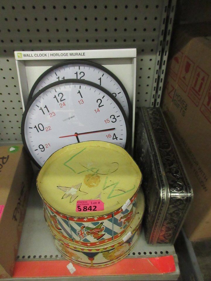 Includes a large metal tin & 2 new wall clocks