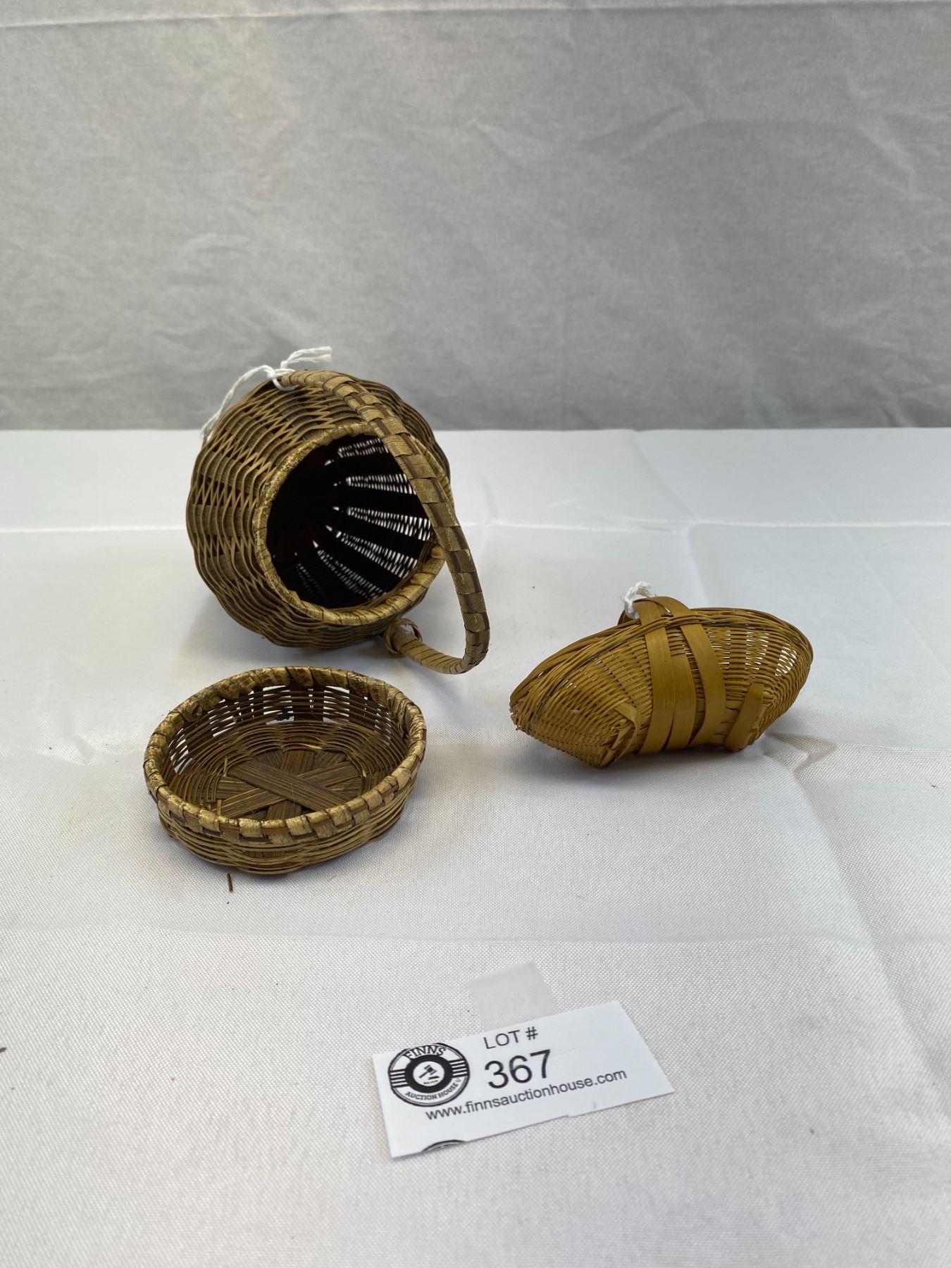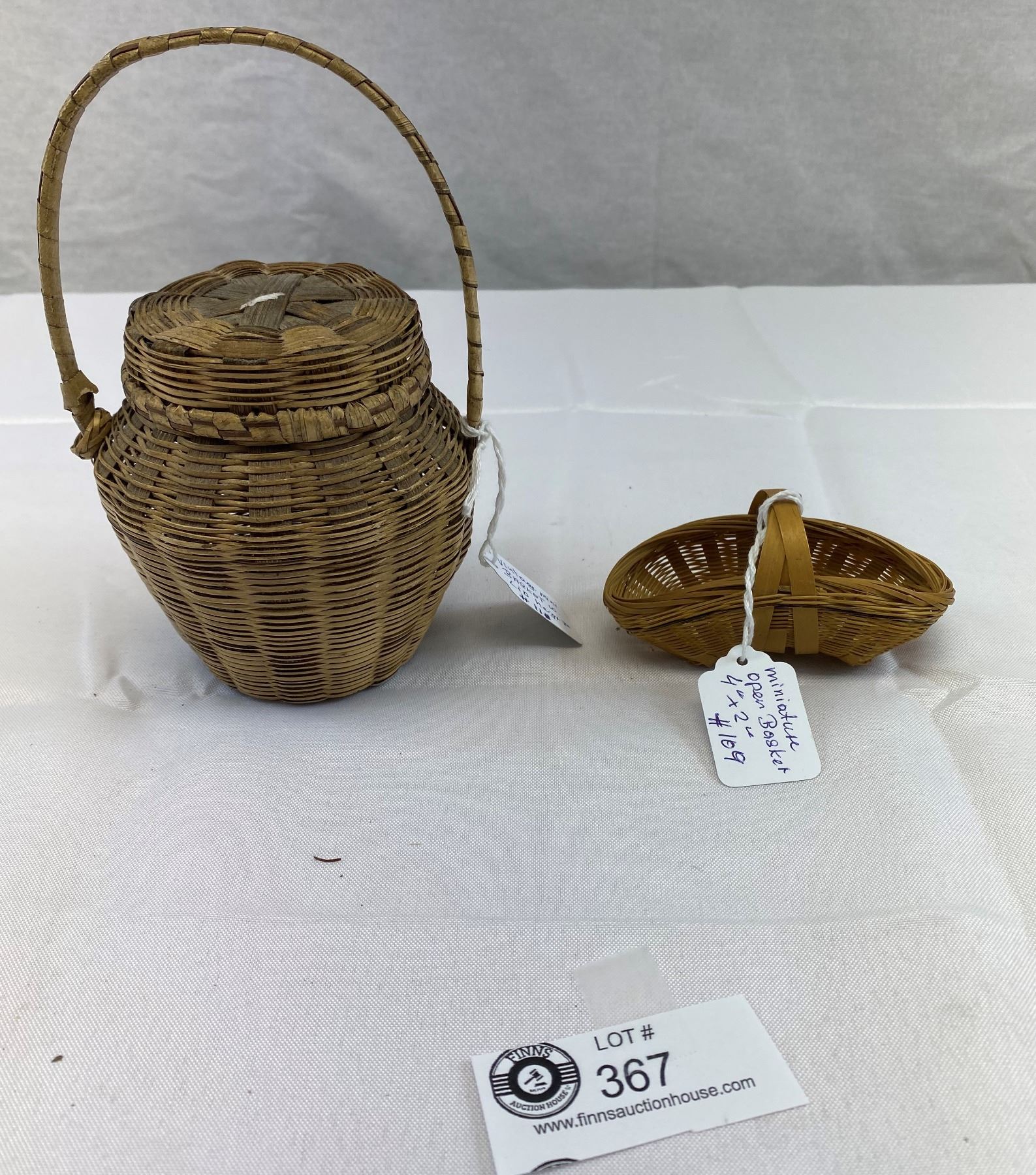 2 Vintage Miniature Baskets 1 An Open Basket Other Is Lidded