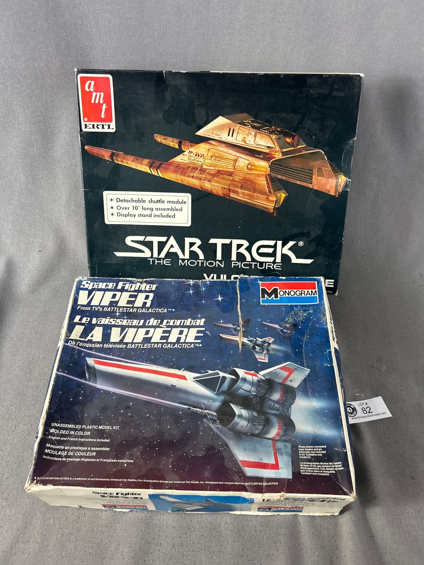 2 Vintage Modeling Kits - AMT Star Trek Vulcan Shuttle & Monogram Battle Star Galactica Space Battle Viper
