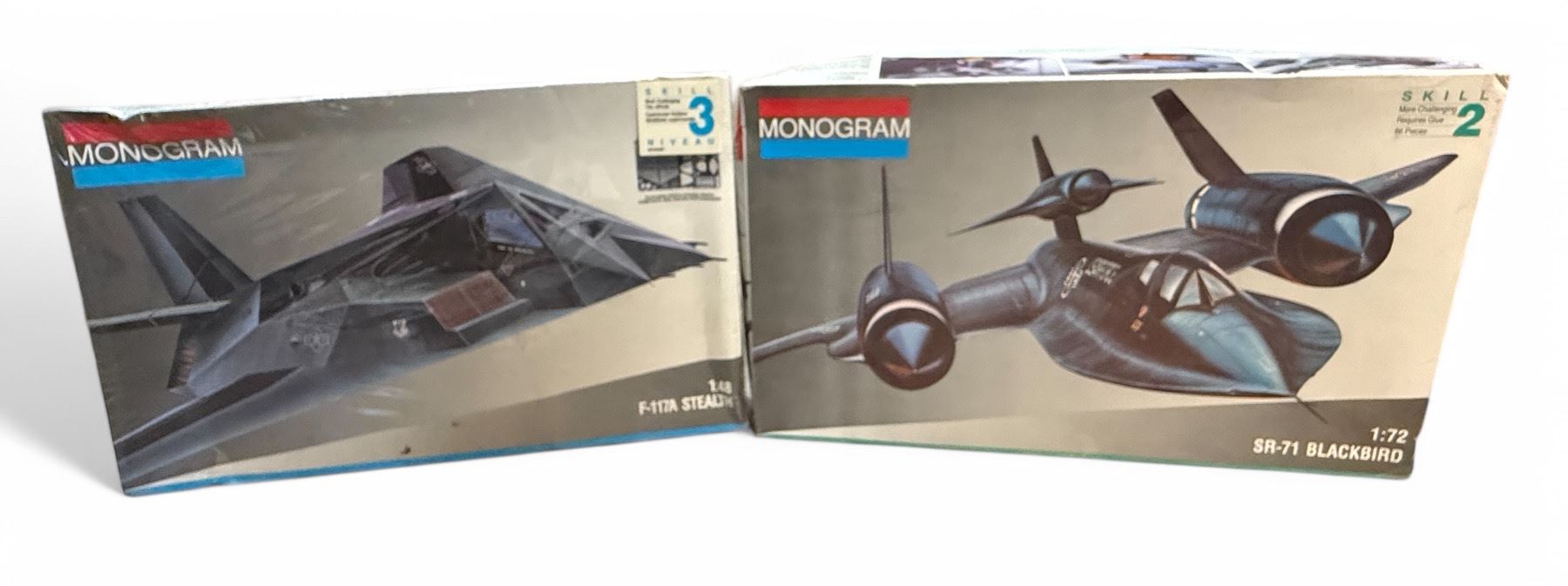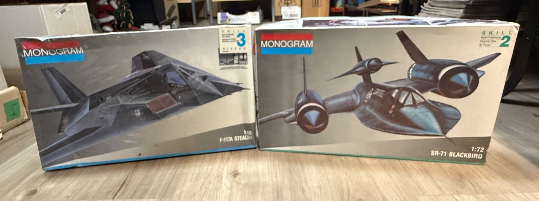 2 Vintage Monogram Model Planes: 1:72 Scale SR-71 Blackbird & 1:48 Scale F-117A Stealth