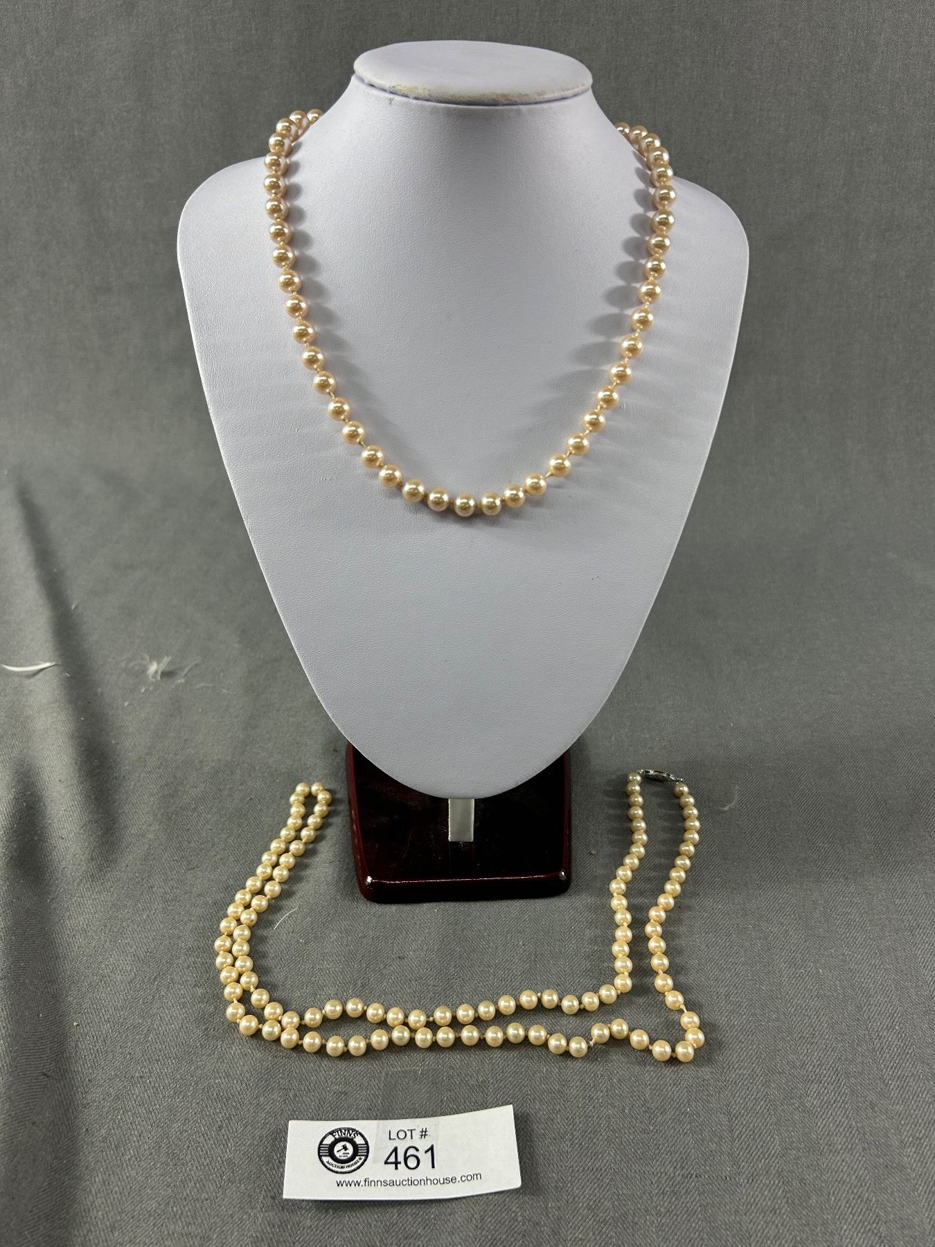 2 Vintage Pearls Necklaces, Both Hand-Knotted Between Each Pearl. Good Condition For Its Age