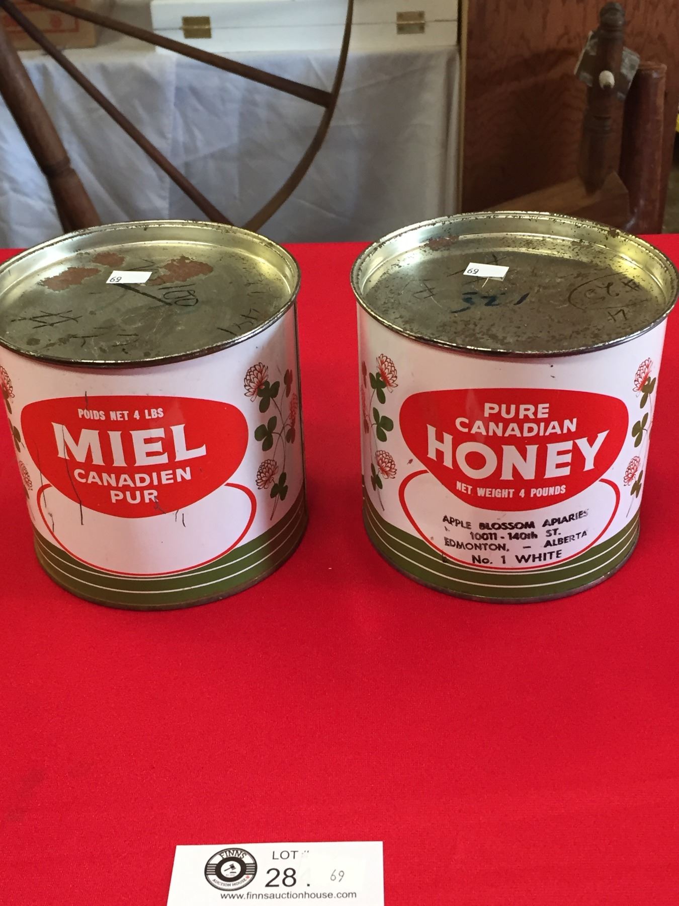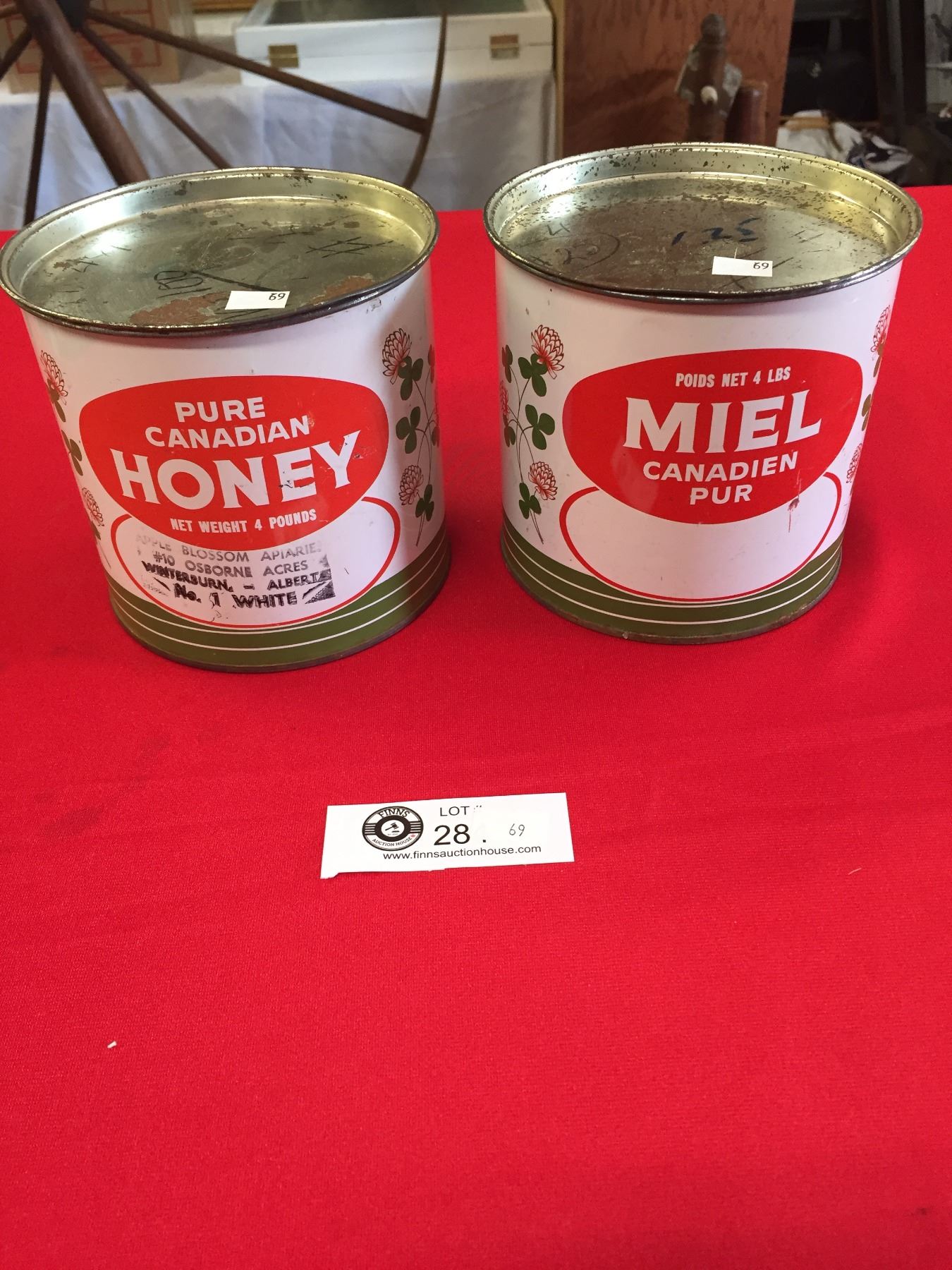 2 Vintage Pure Canadian Honey Tins. Net Wieght 4lbs, Tins are Empty