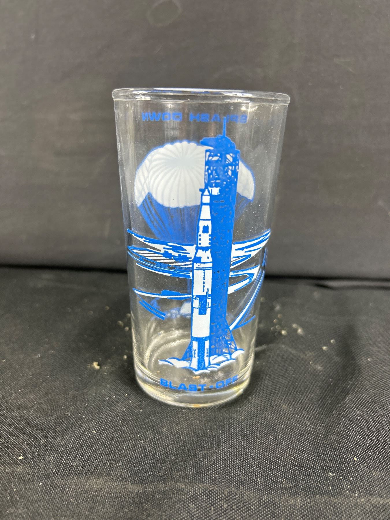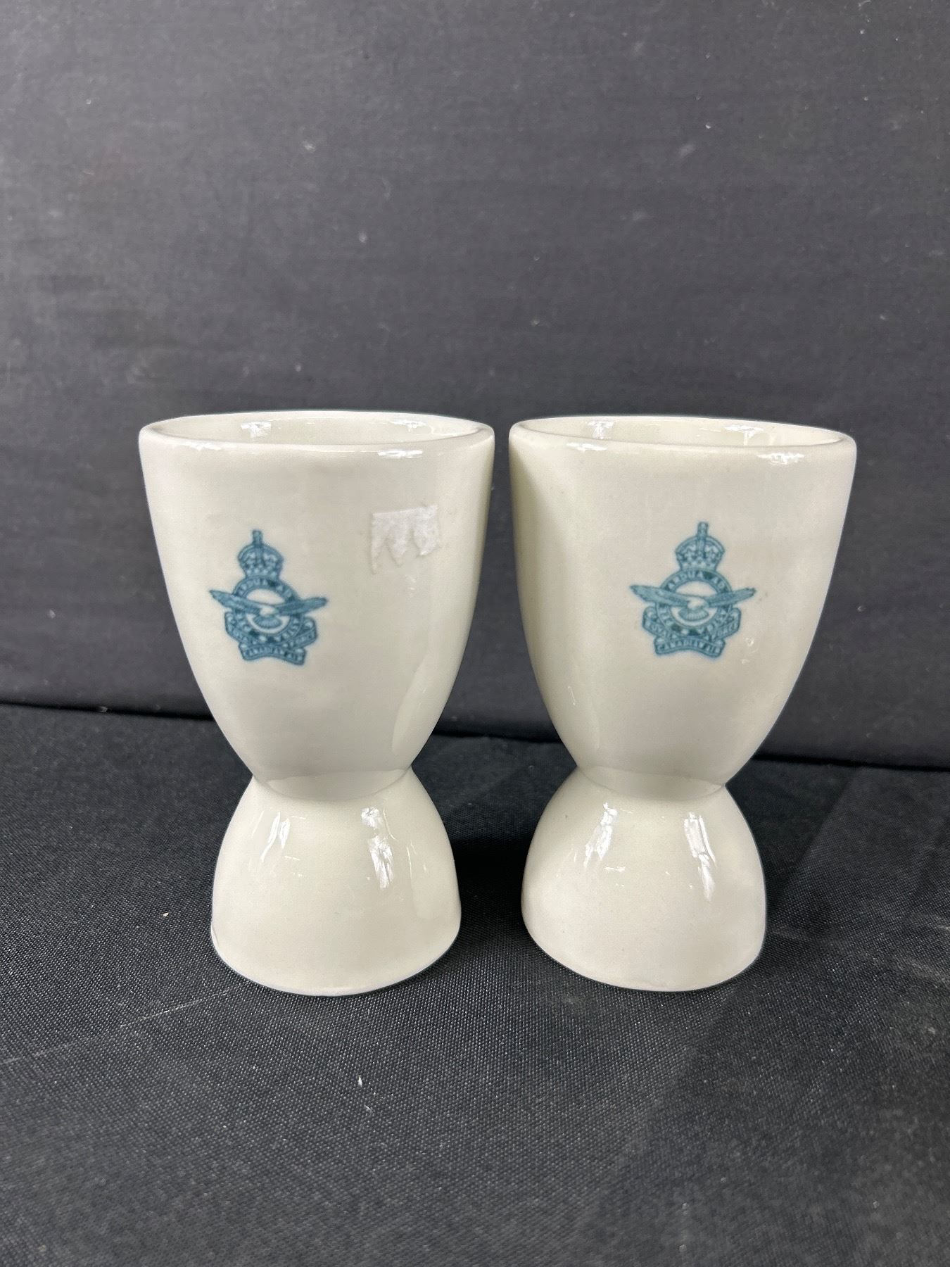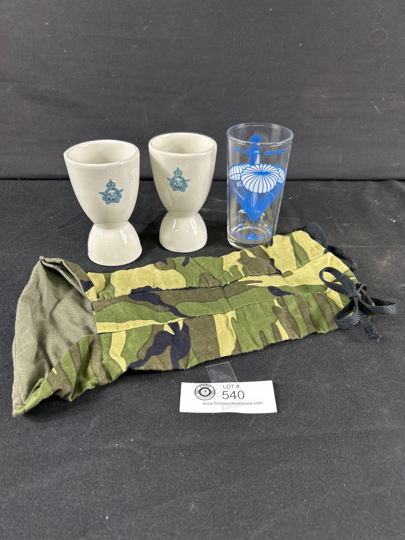 2 Vintage RCAF Double Egg Cups, NASA Glass & Camo Bottle Carrier