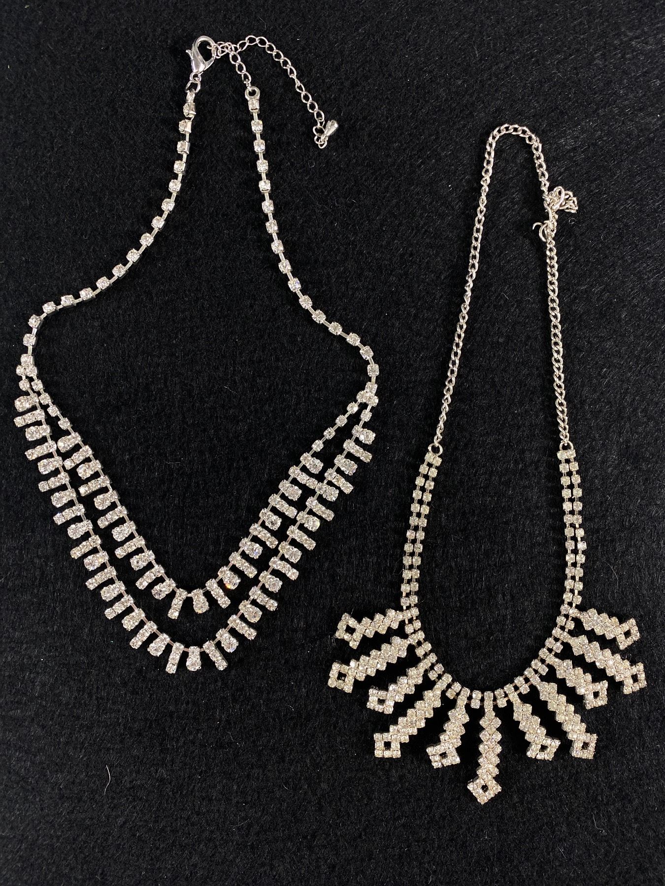 2 Vintage Rhinestone Choker Necklaces Original Patina in Good Conditions