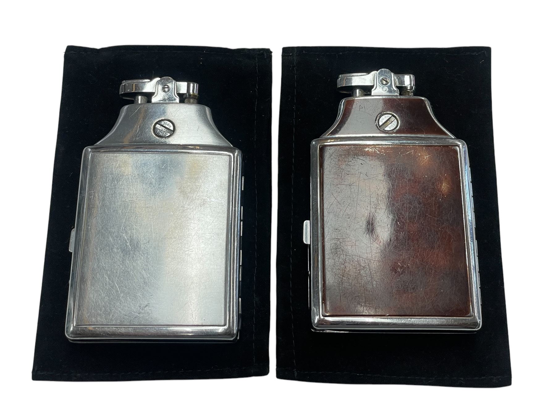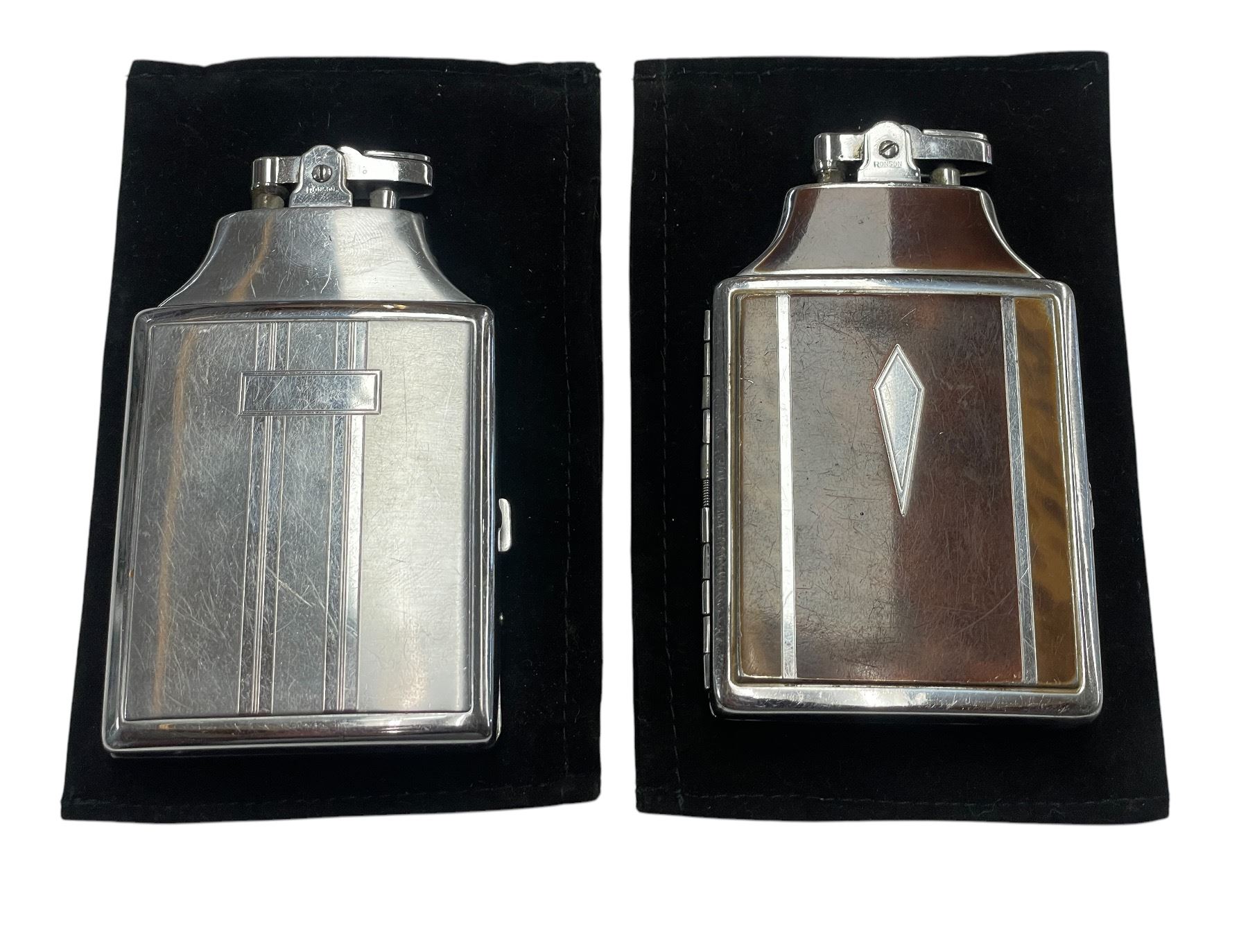 2 Vintage Ronson Gas Lighters & Cigarette Holders with 2 Velvet Pouches