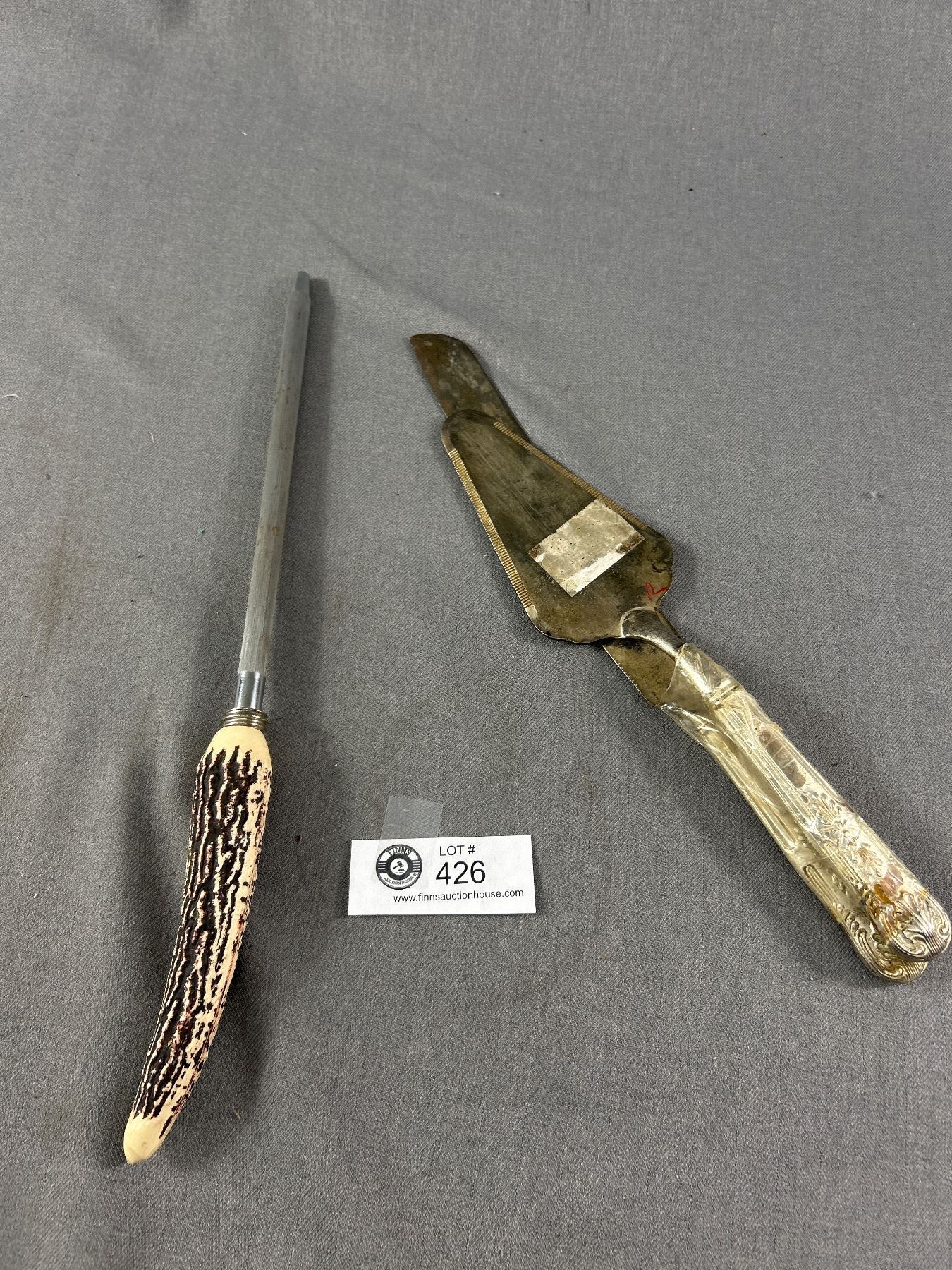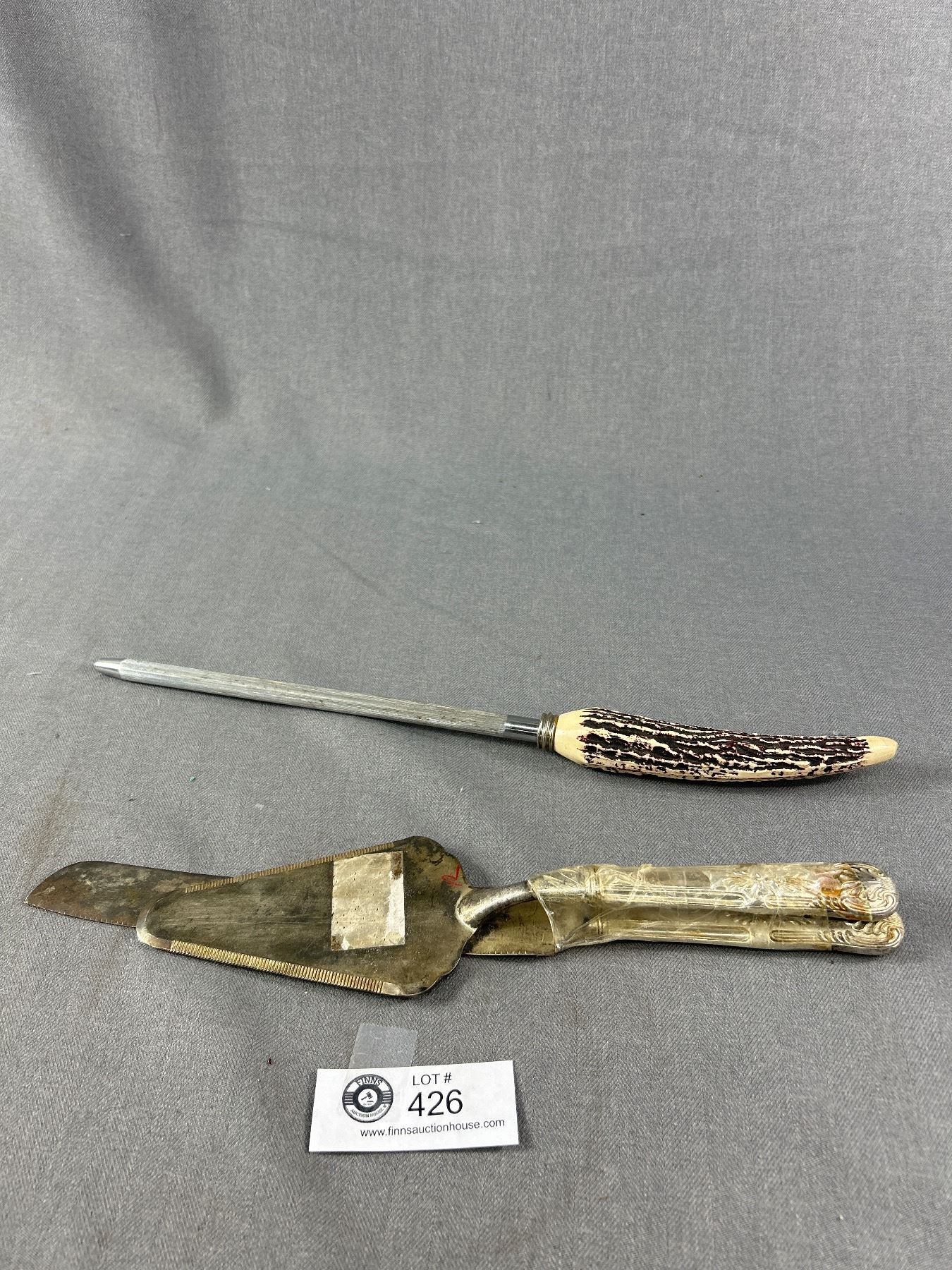 2 Vintage Silver Handled Cutlery and a Bone Handle Knife Sharpener