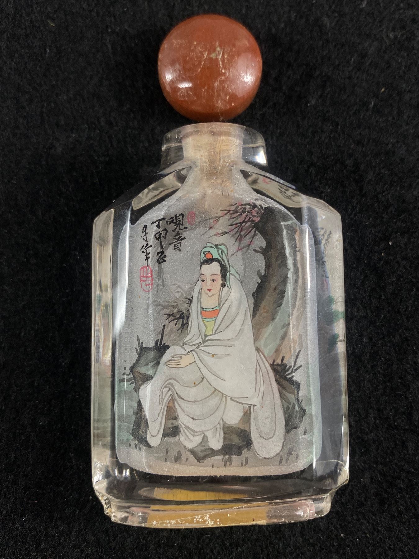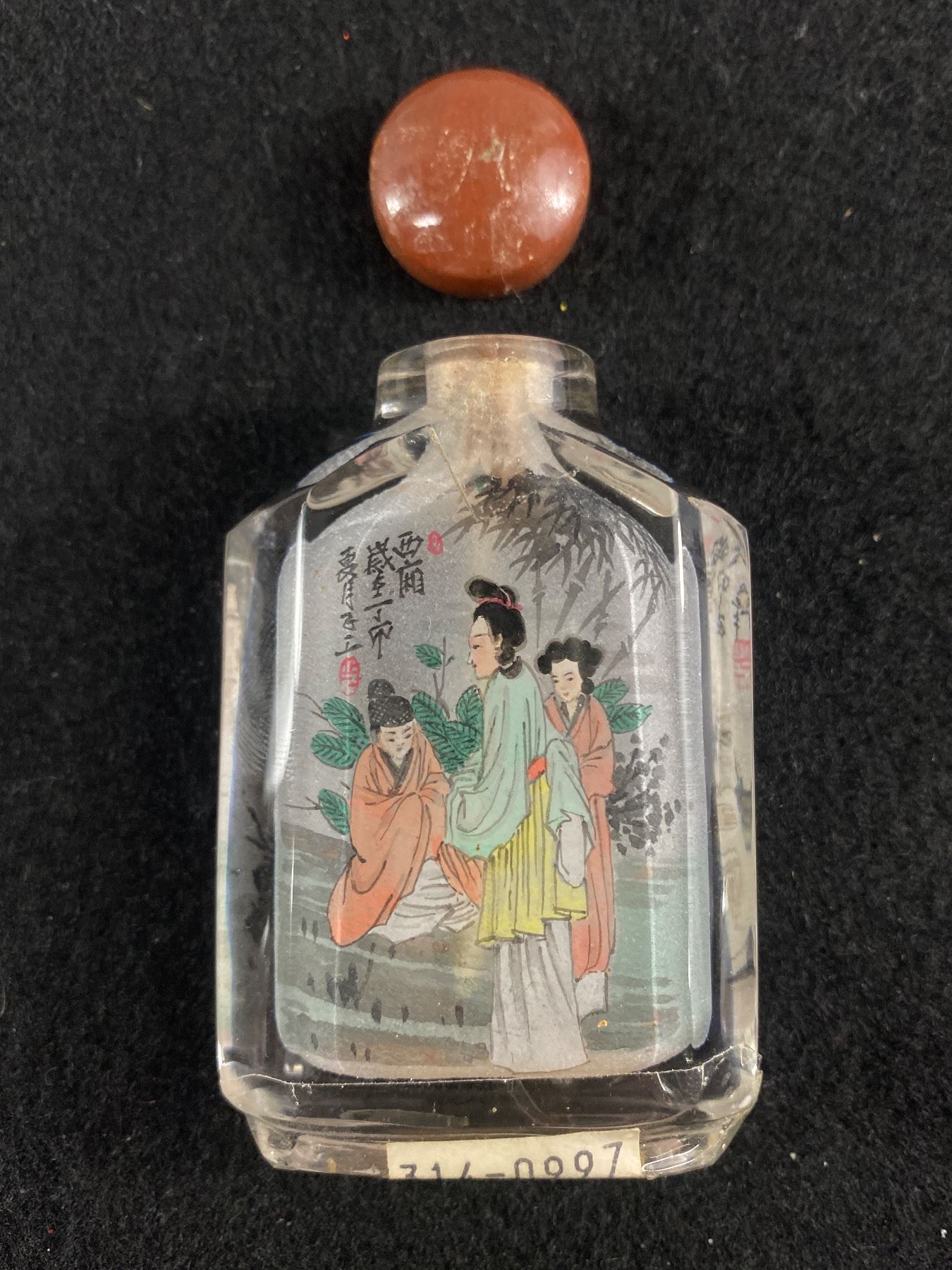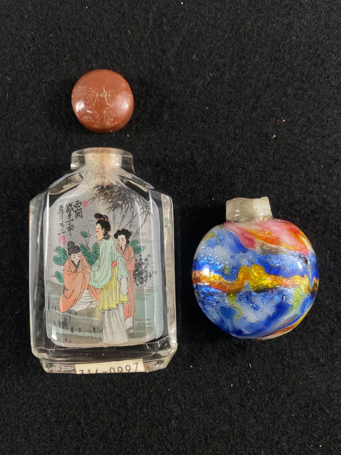 2 Vintage Snuff Bottles - 3" H Asian w/Lid & 2" Glitter
