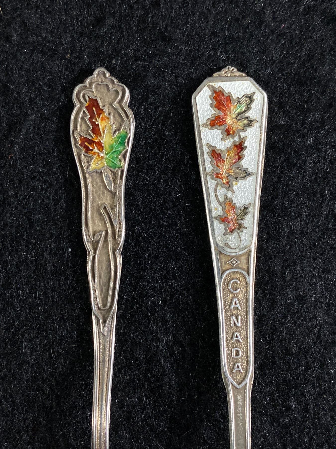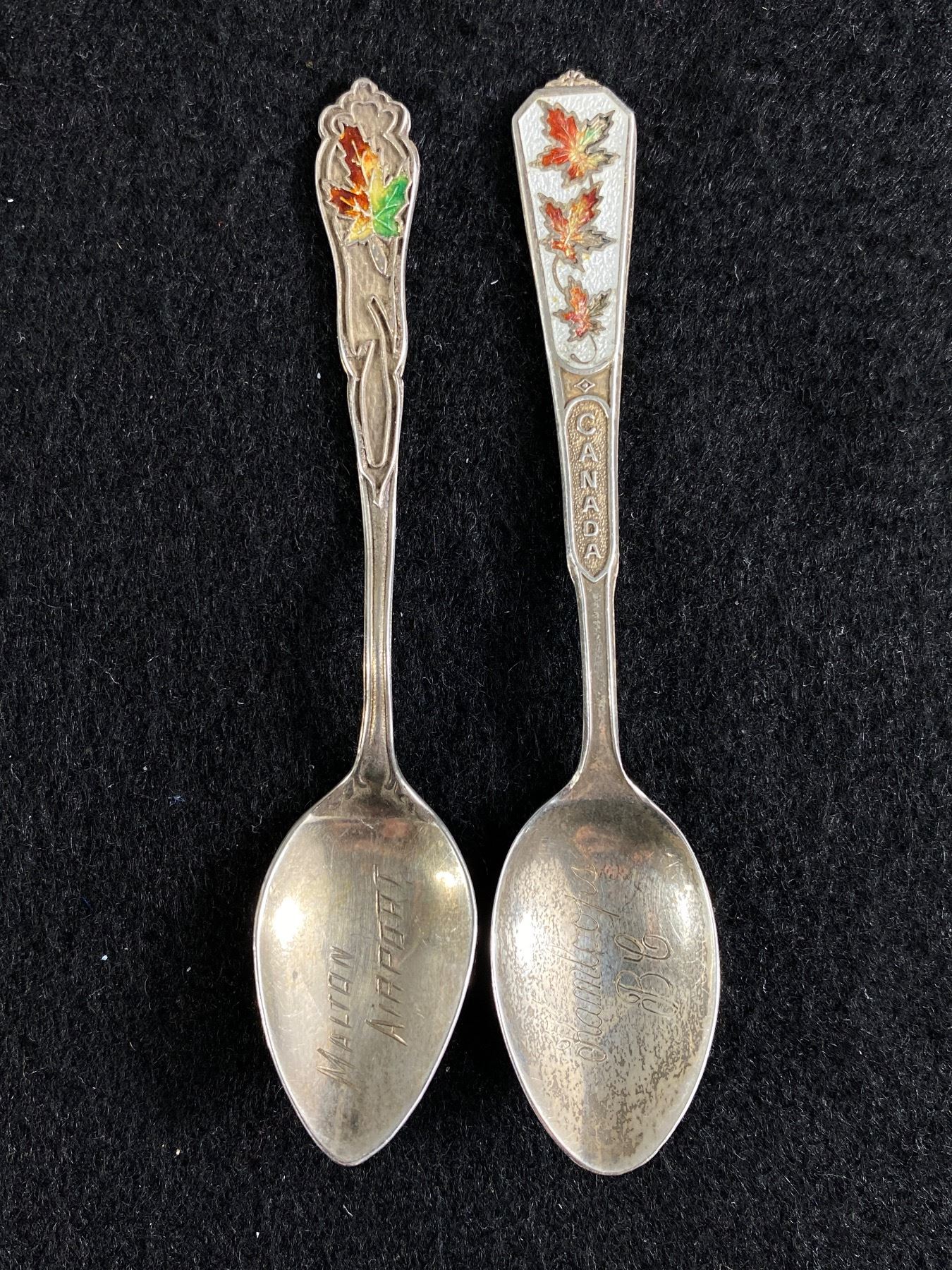 2 Vintage Sterling Silver Enameled Canada Souvenir Spoons