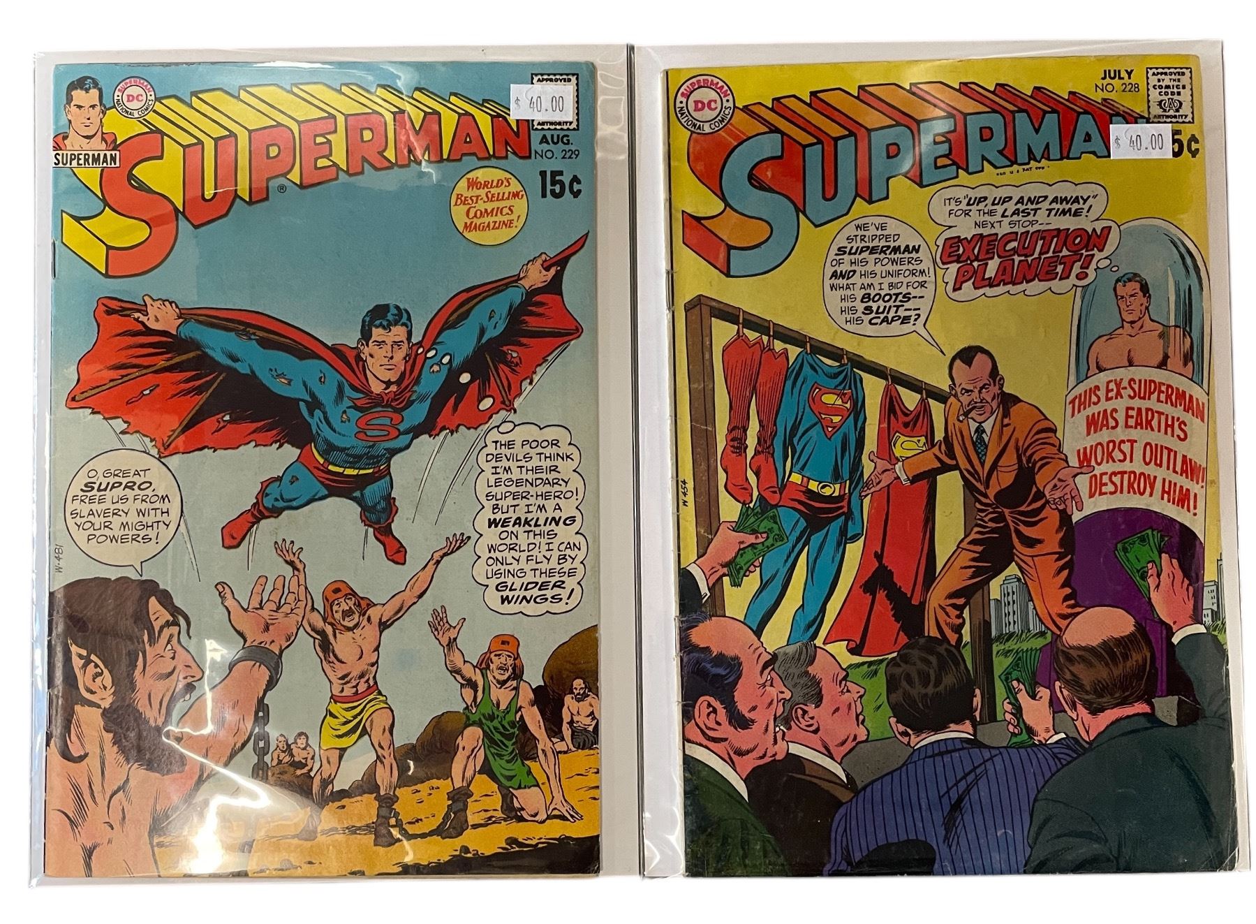 2 Vintage Superman Comic Books: July No.228 & Aug No.229