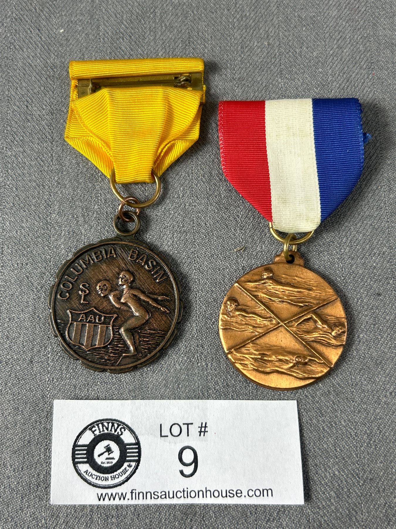 2 Vintage Swimming Medals w/Ribbon - Amateur Athletics Union Columbia Basin & Other