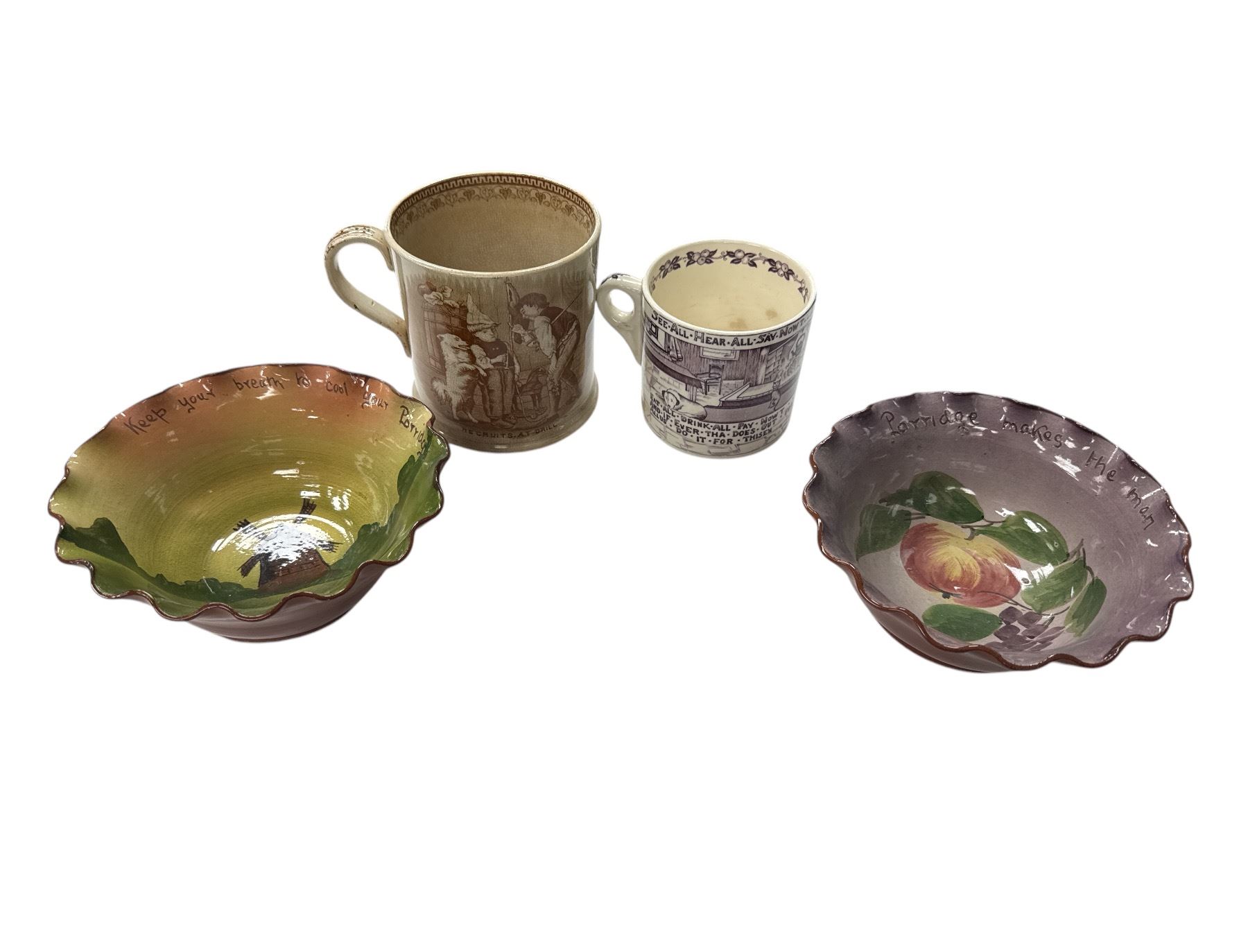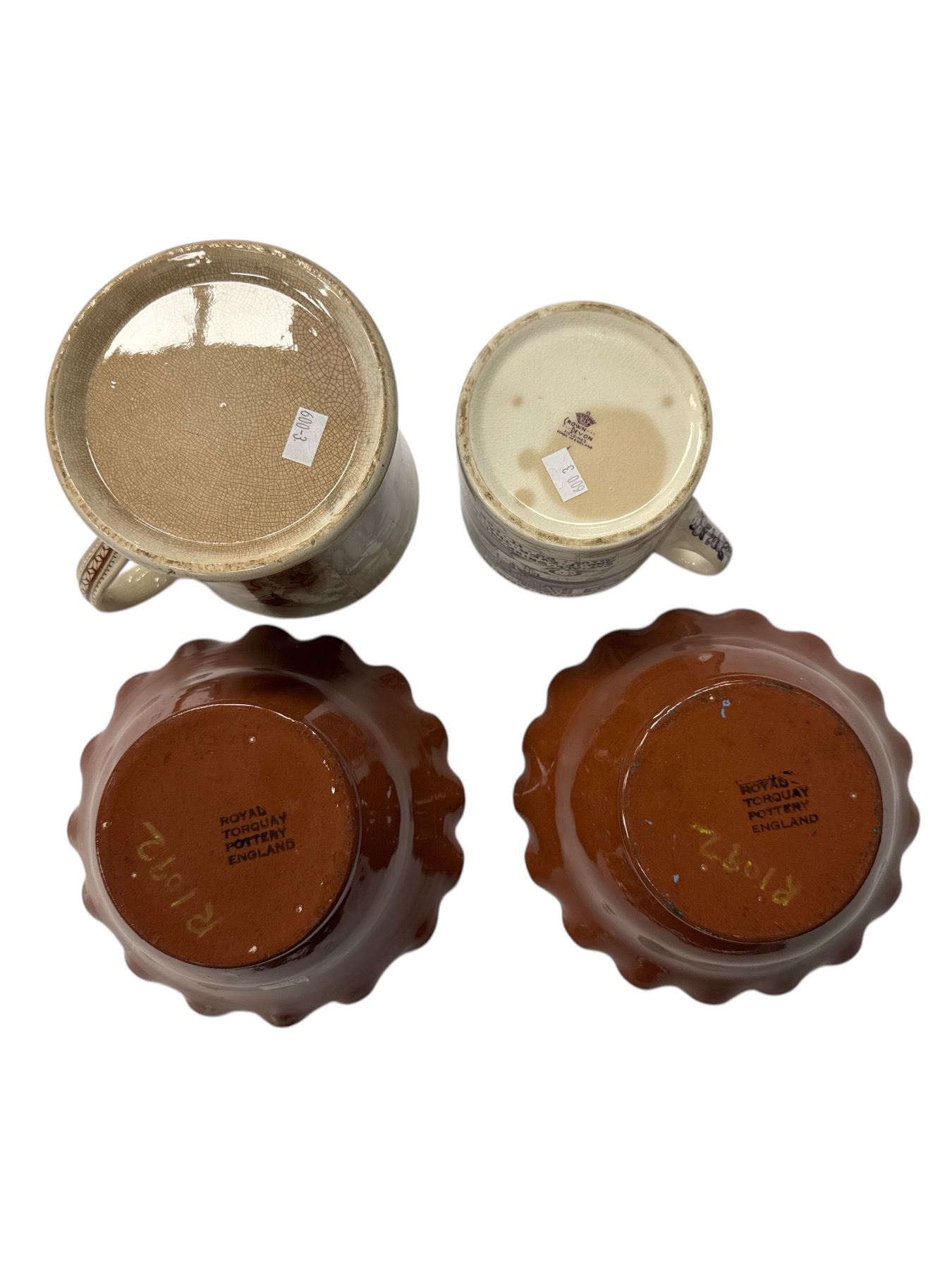 2 Vintage Terracotta Porridge Bowls Royal Torquay & 2 Mugs