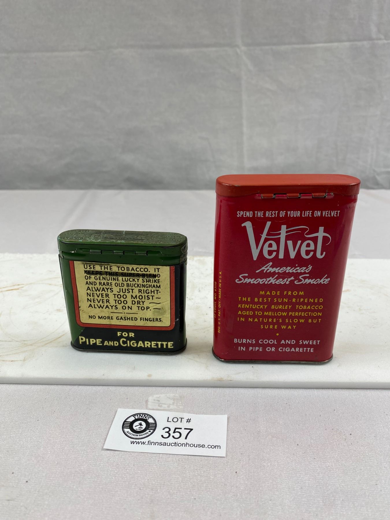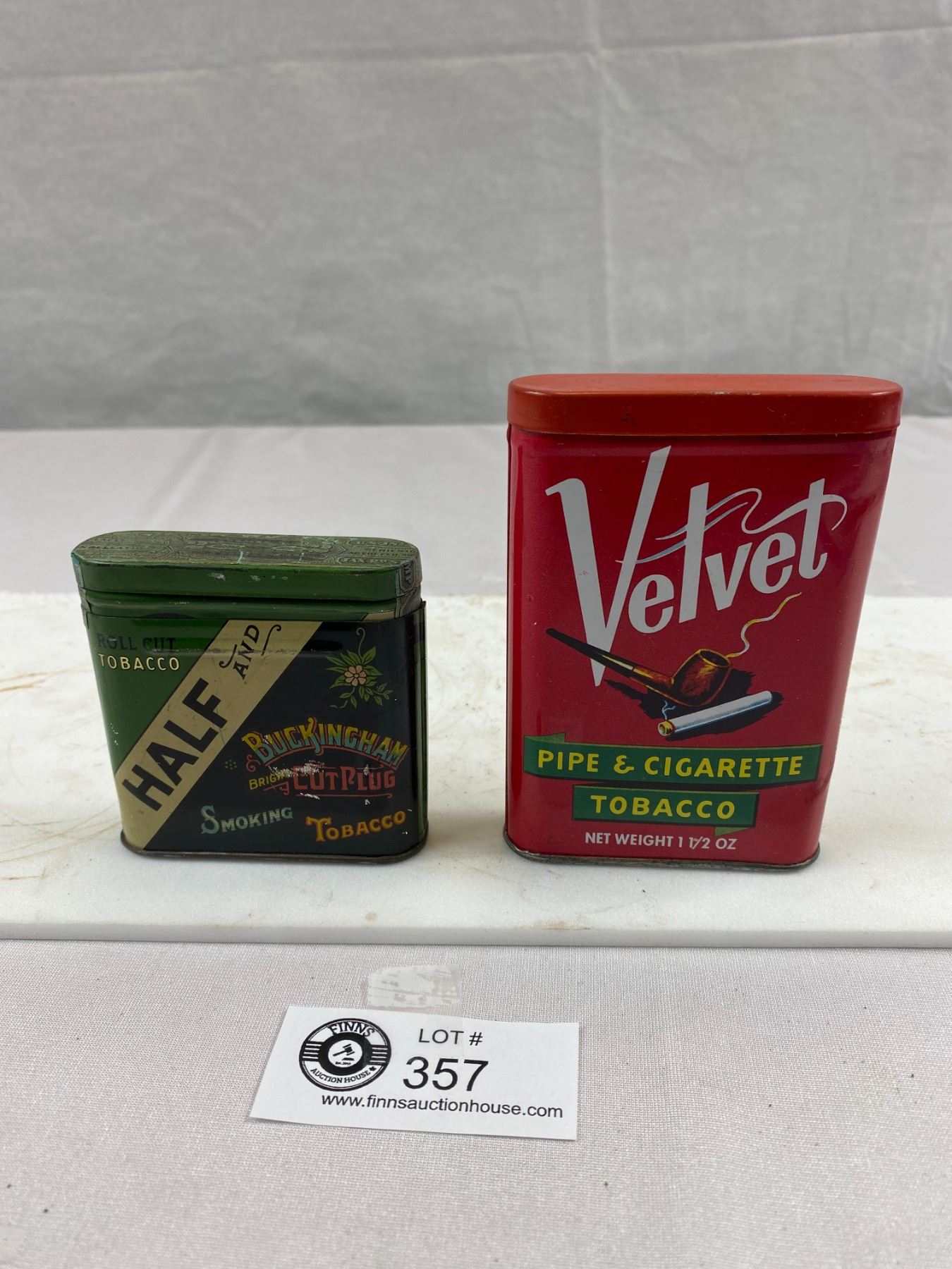 2 Vintage Tobacco Tins, Velvet Pipe And Cigarette Tobacco And Half And Buckingham Bright Cut Plug Smoking Tobacco, Excellent Shape With Amazing Graphics