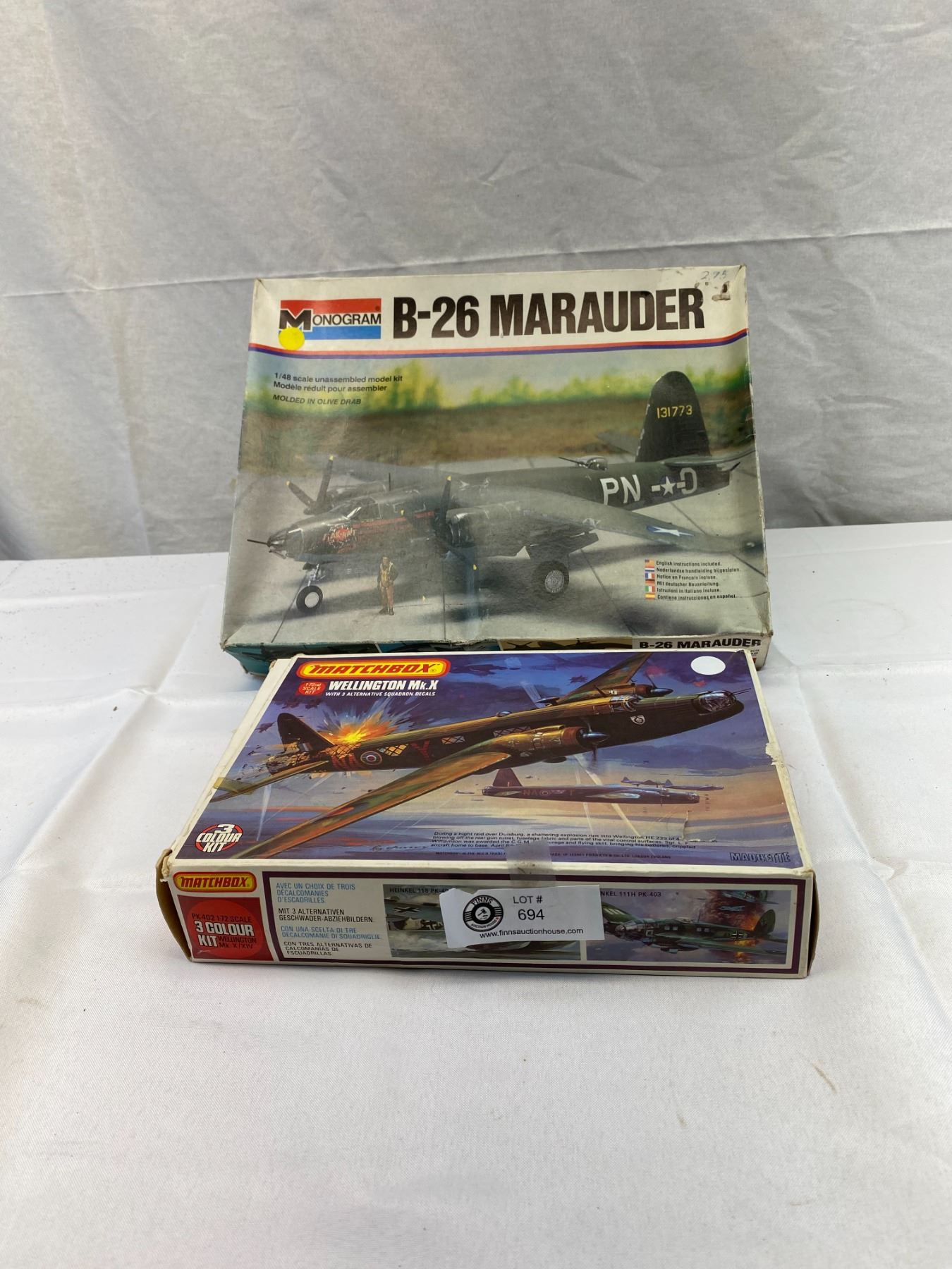 2 Vintage War Plane Models, Matchbox Wellington And B26