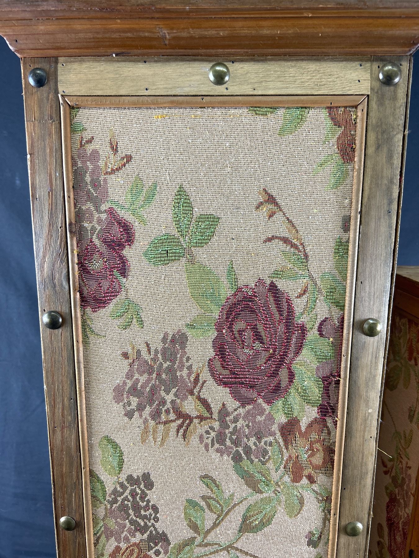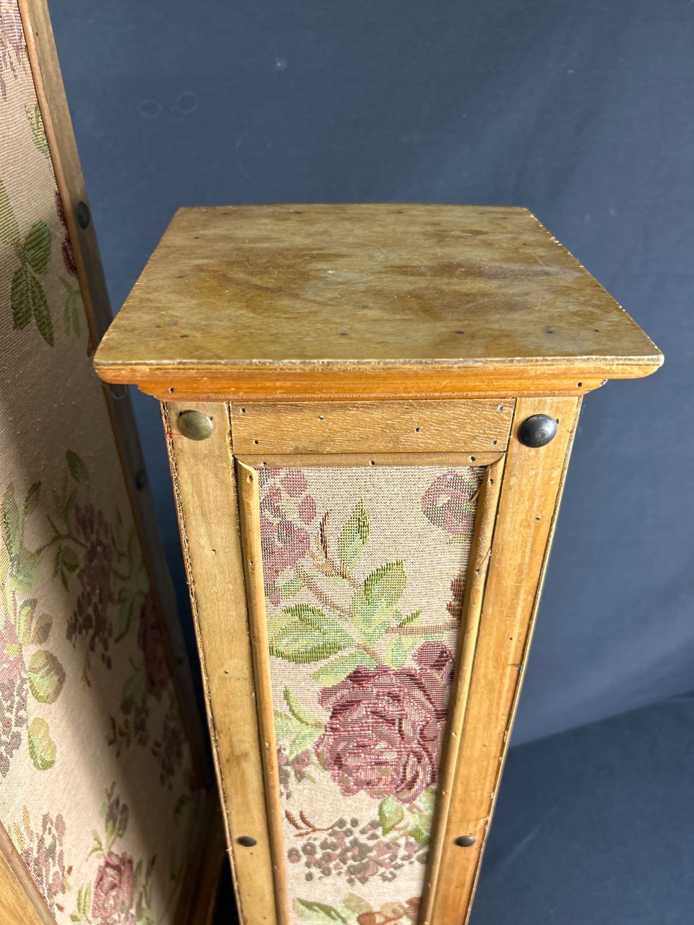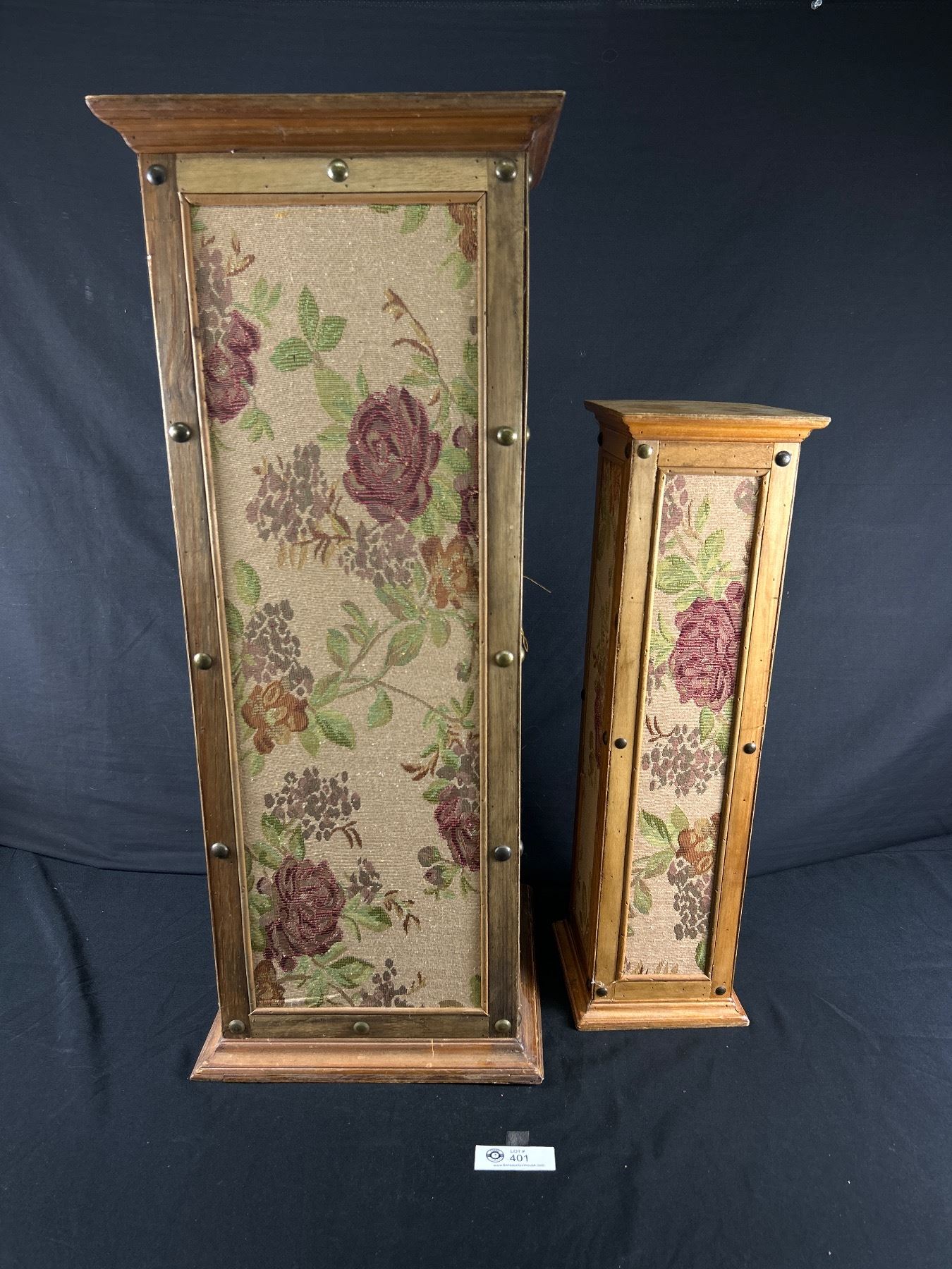 2 Vintage Wood Fabric Covered Pedalstals w/ Metal Tack Accents. Approx. 24" & 32" H