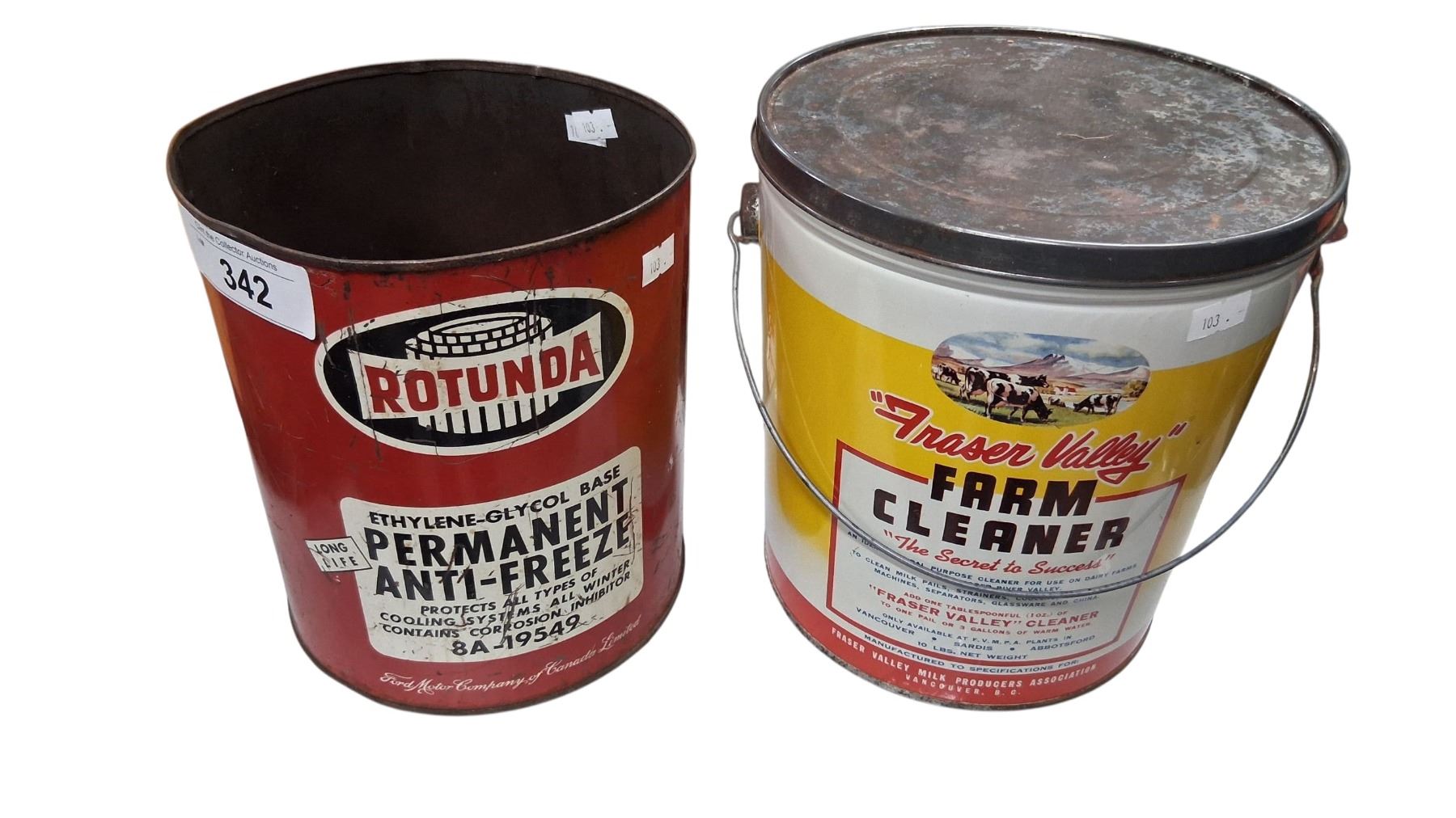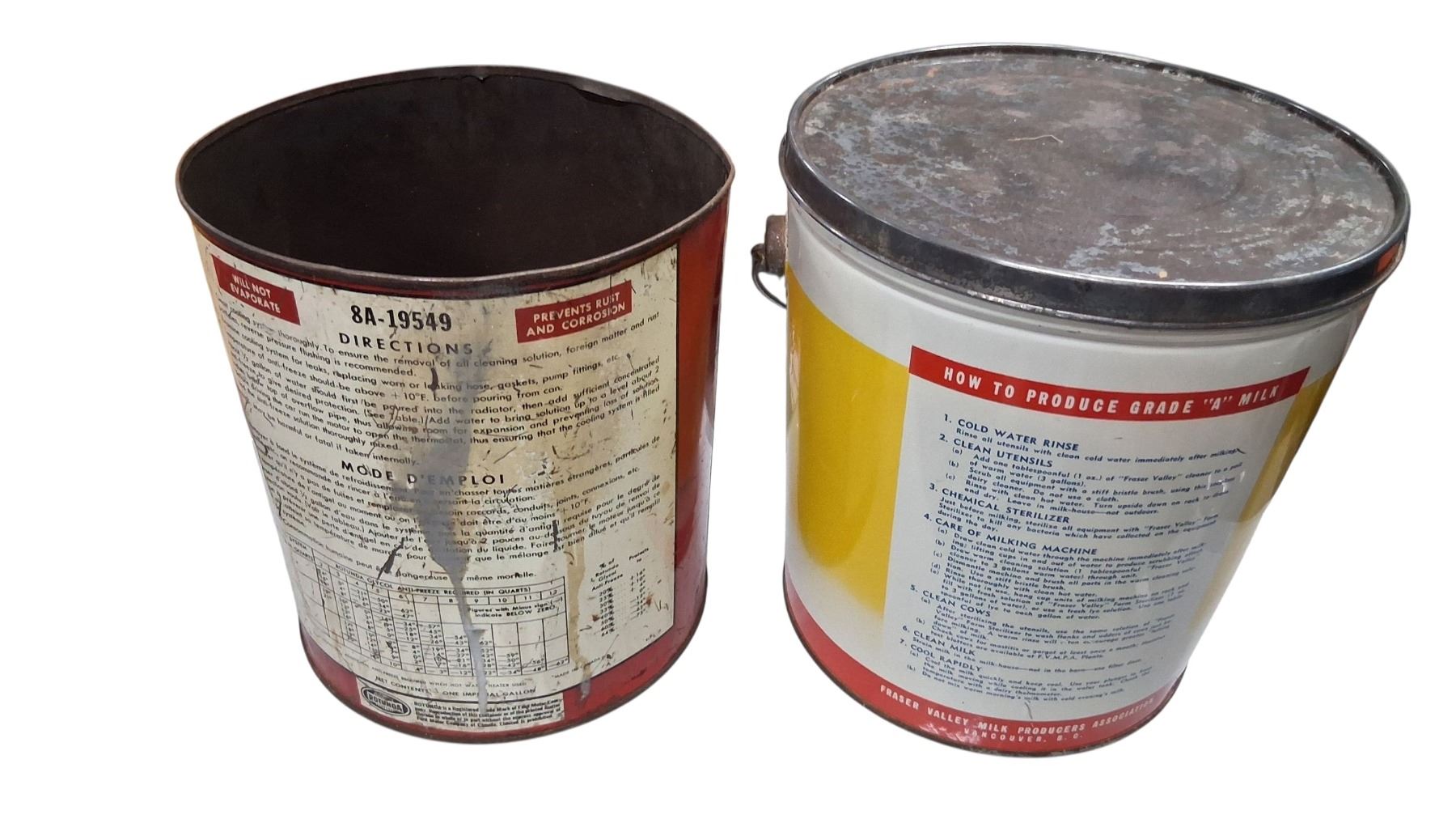 2 Vintage oil cans, Fraser Valley and Rotunda