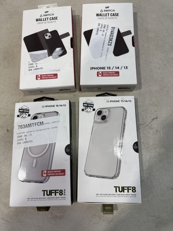 2 WALLET CASES AND 2 CASES FOR IPHONE 15/14/13