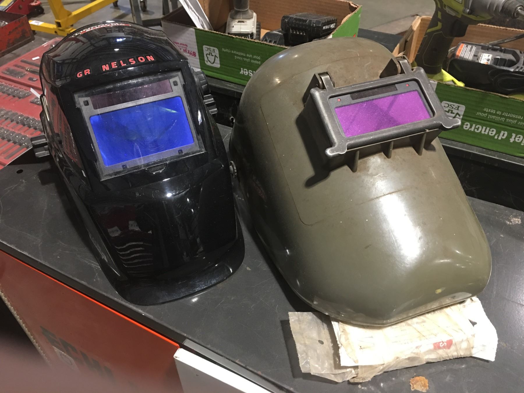 2 WELDING HELMETS - LINCOLN ELECTRIC BLACK & MILITARY GREEN WITH EXTRA LENS