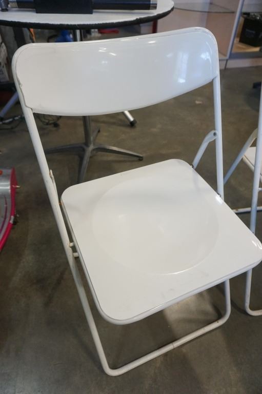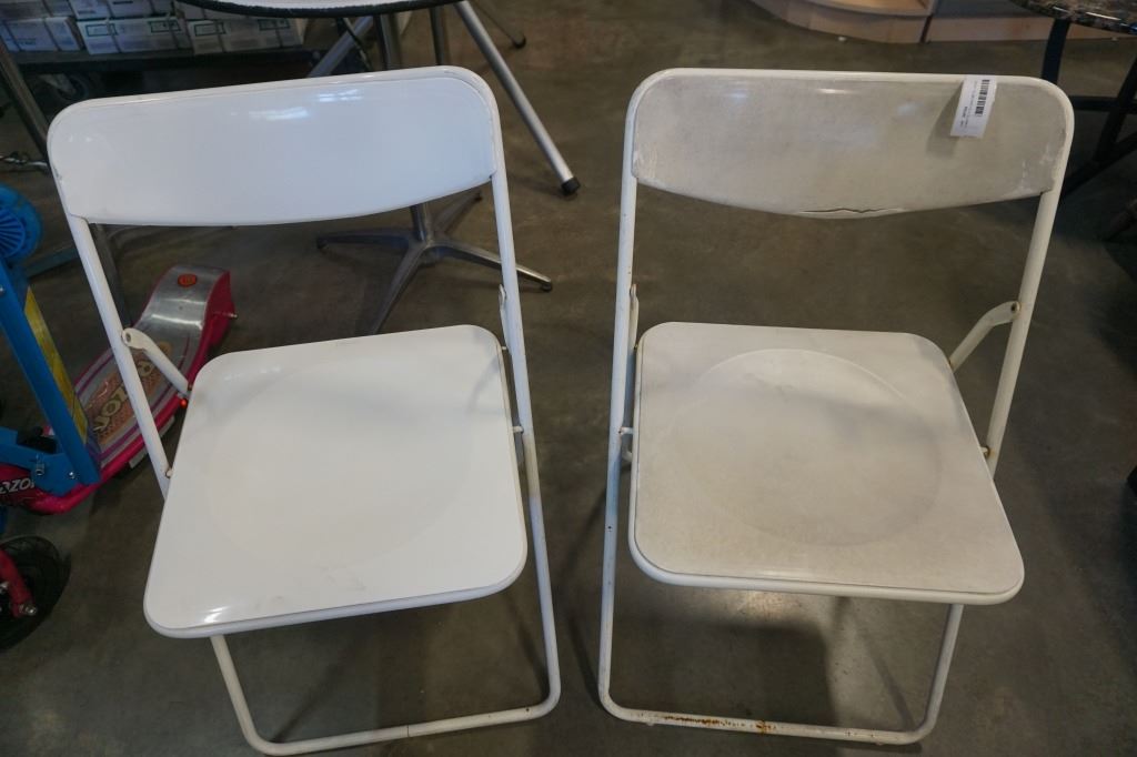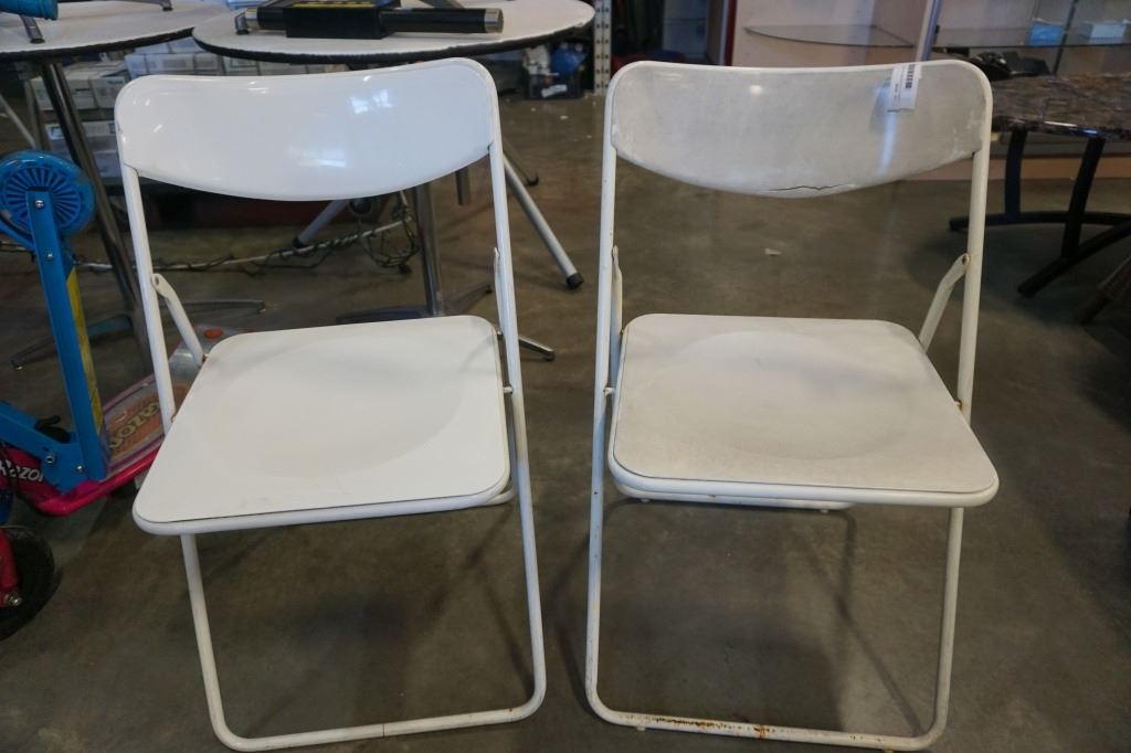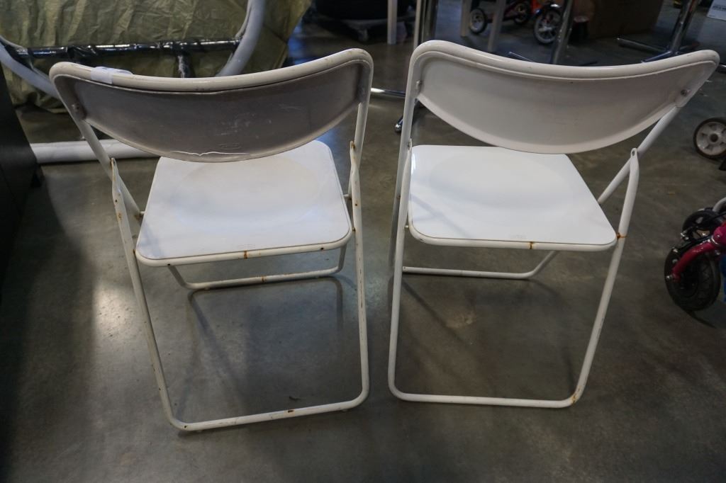 2 WHITE FOLDING METAL CHAIRS