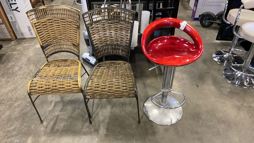 2 WICKER CHAIRS AND GAS LIFT STOOL