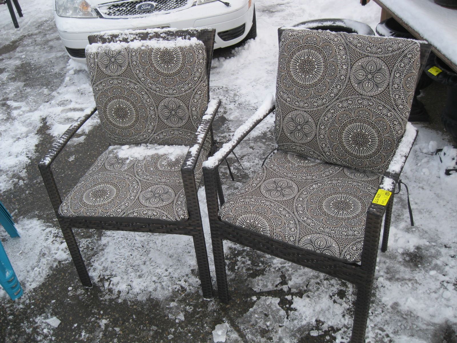 2 WICKER LOOK CHAIRS W/CUSHIONS