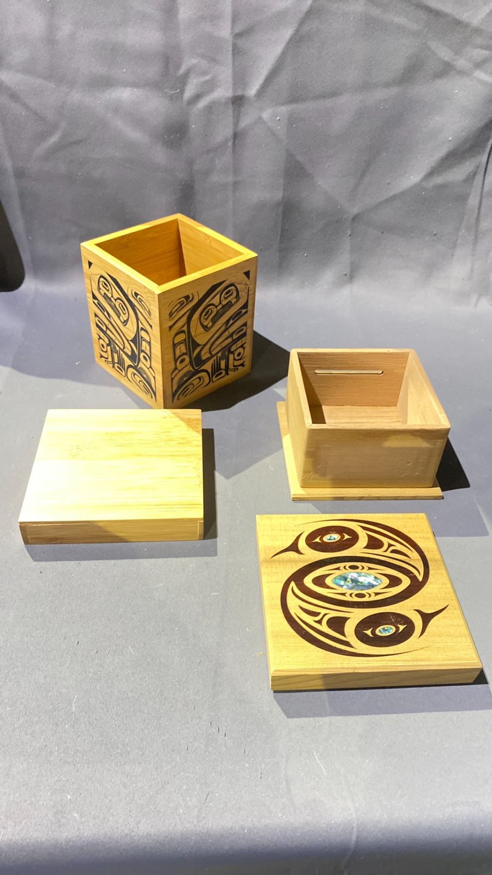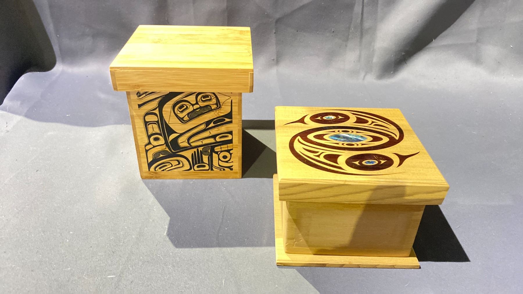 2 WOODEN FIRST NATIONS LIDDED KEEPSAKE BOXES