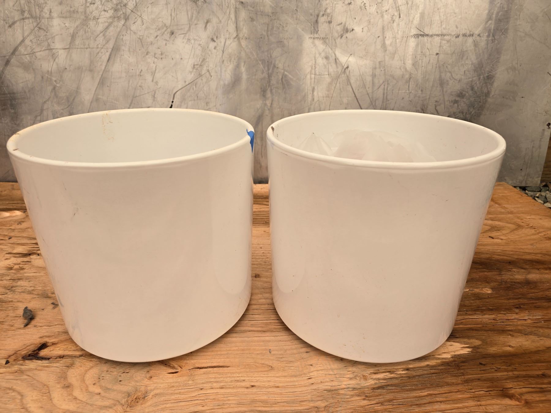 2 White Ceramic Flower Pots - Items have not been tested - Viewing Recommended- 17% Buyer Fee. Payment Processed through Live Auction World ( Visa or Master Card ) pick up Saturday or Tuesday
