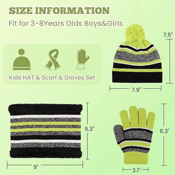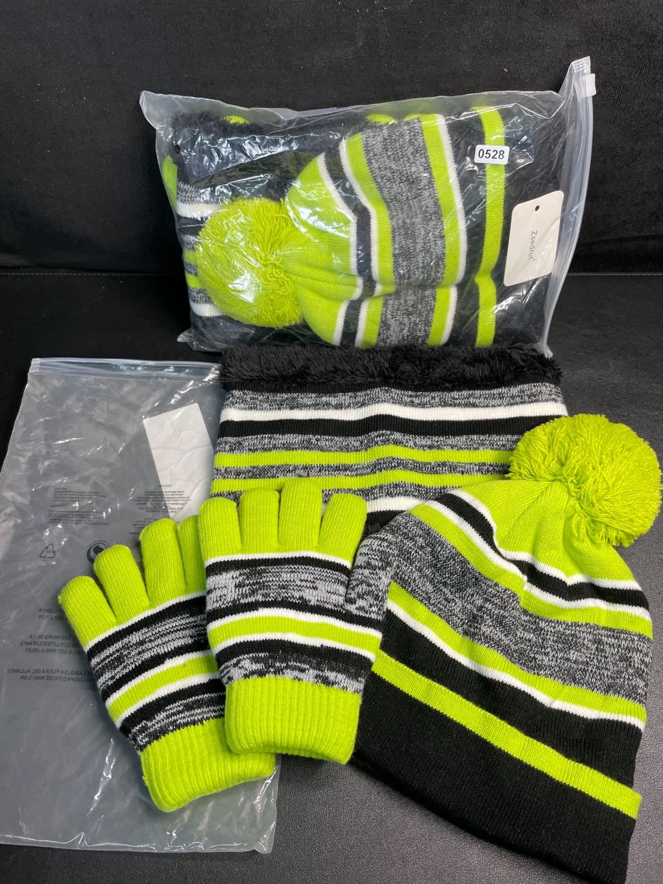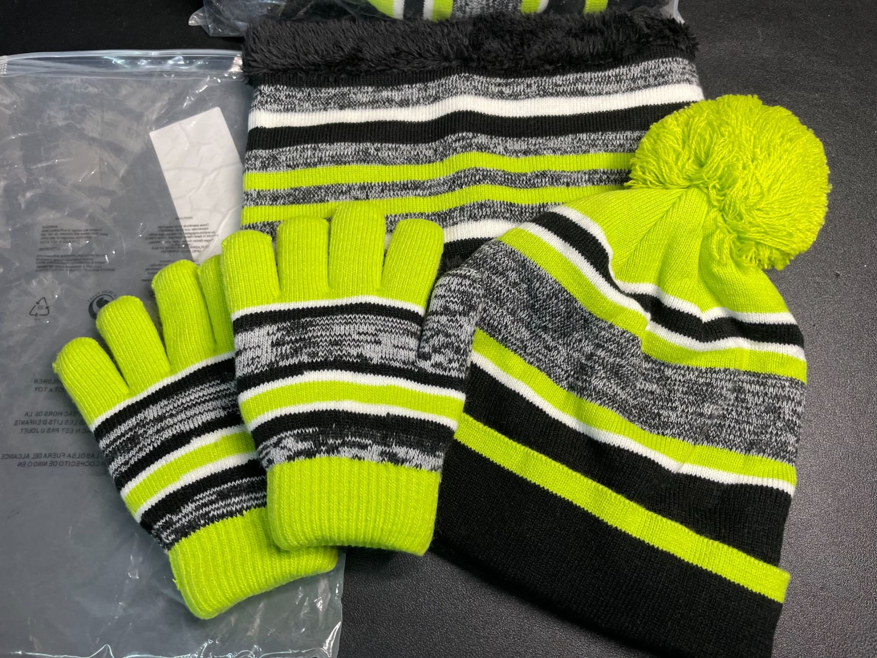 - 2 sets included (each includes a winter beanie/toque, gloves, and neck warmer)