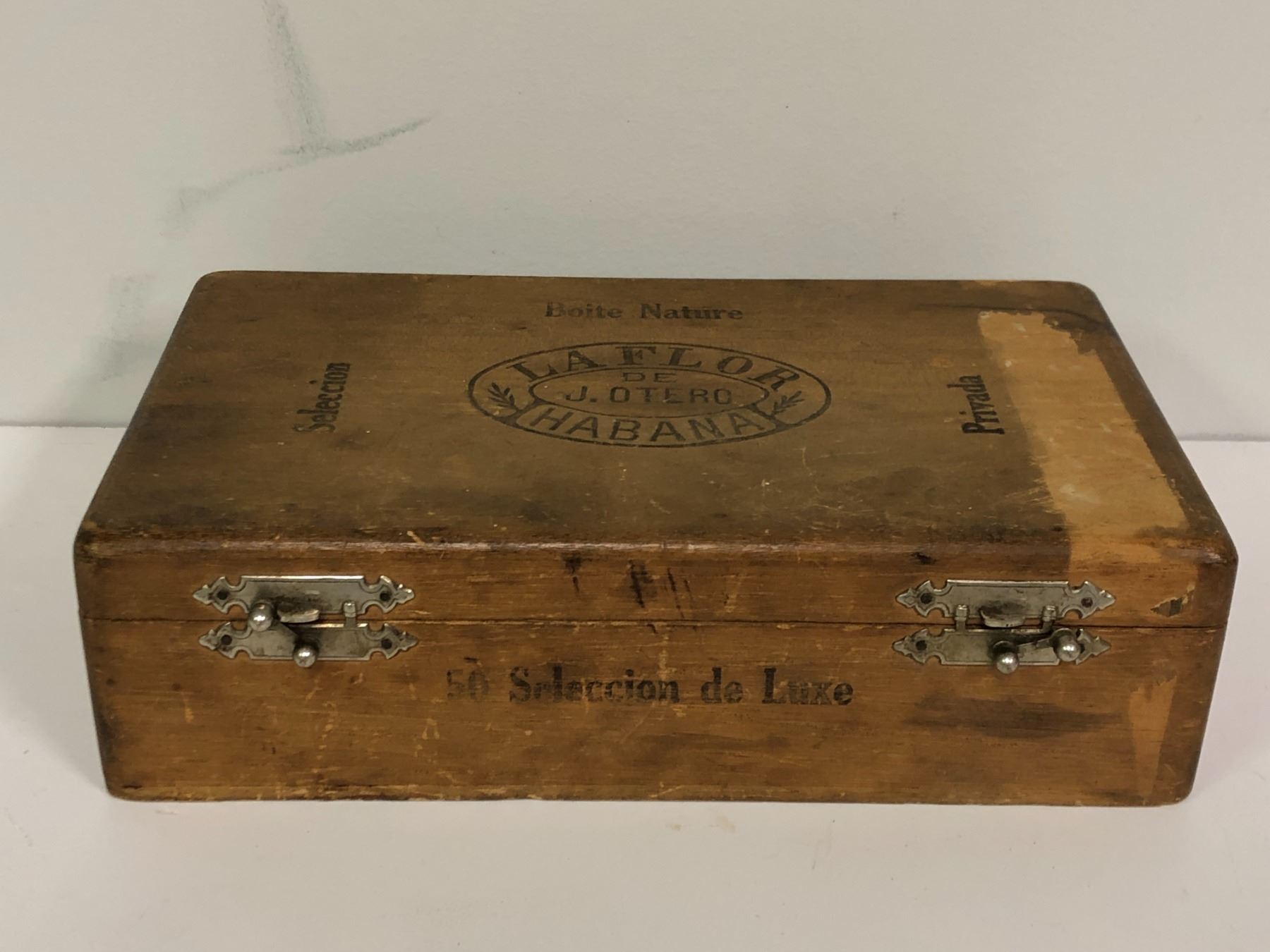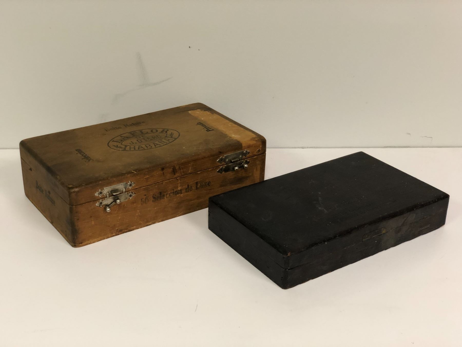 2 antique wooden cigar boxes - La Flor Habana & Petit Coronas