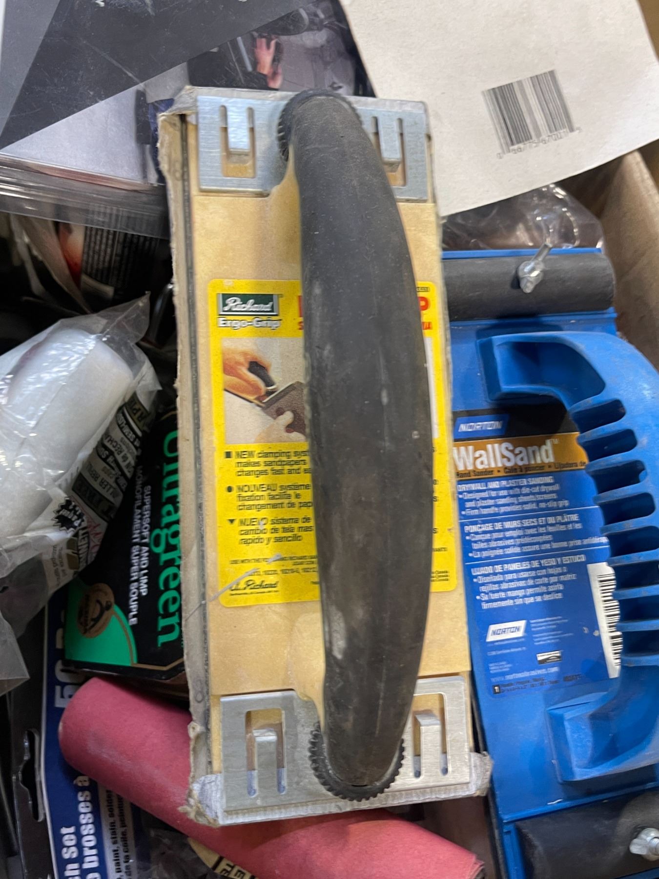 2 boxes full of assorted tools - includes a box full of Clear-Spray Sealer for Electric Components/Norton WallSand/New 7/8" Automotive Acrylic Tape etc.