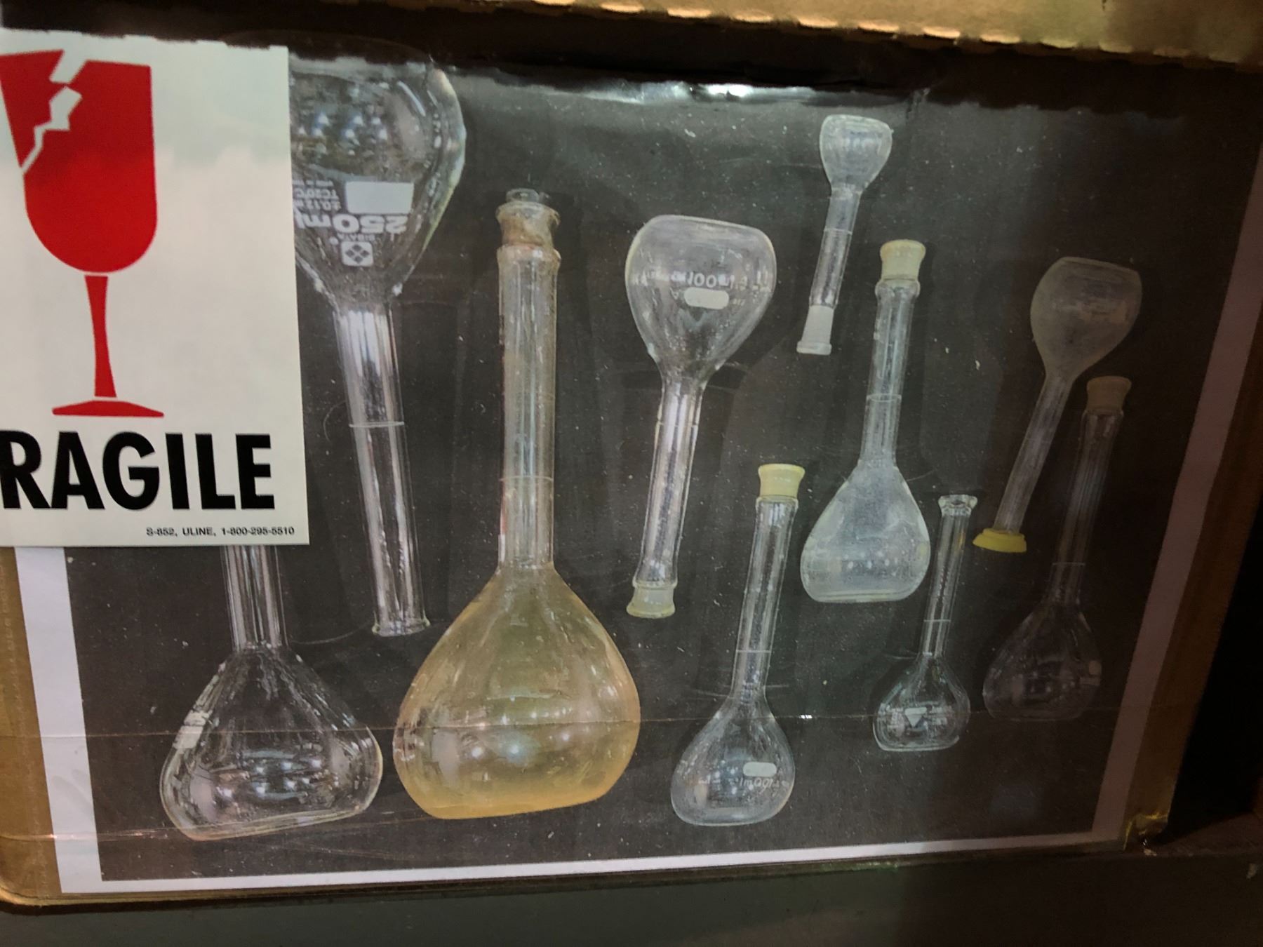 3 boxes full of laboratory glassware - includes misc glass flasks (retail value $700)