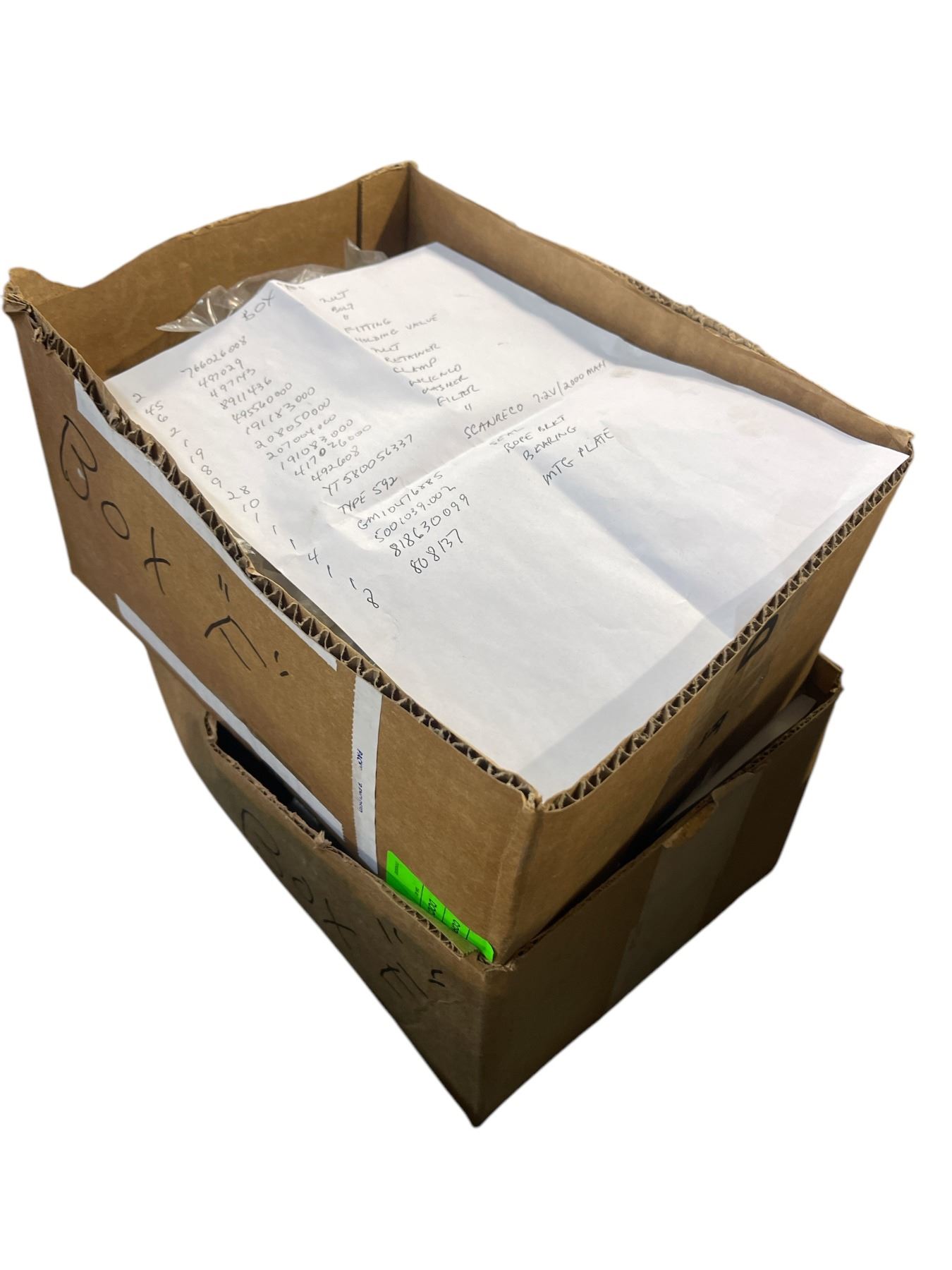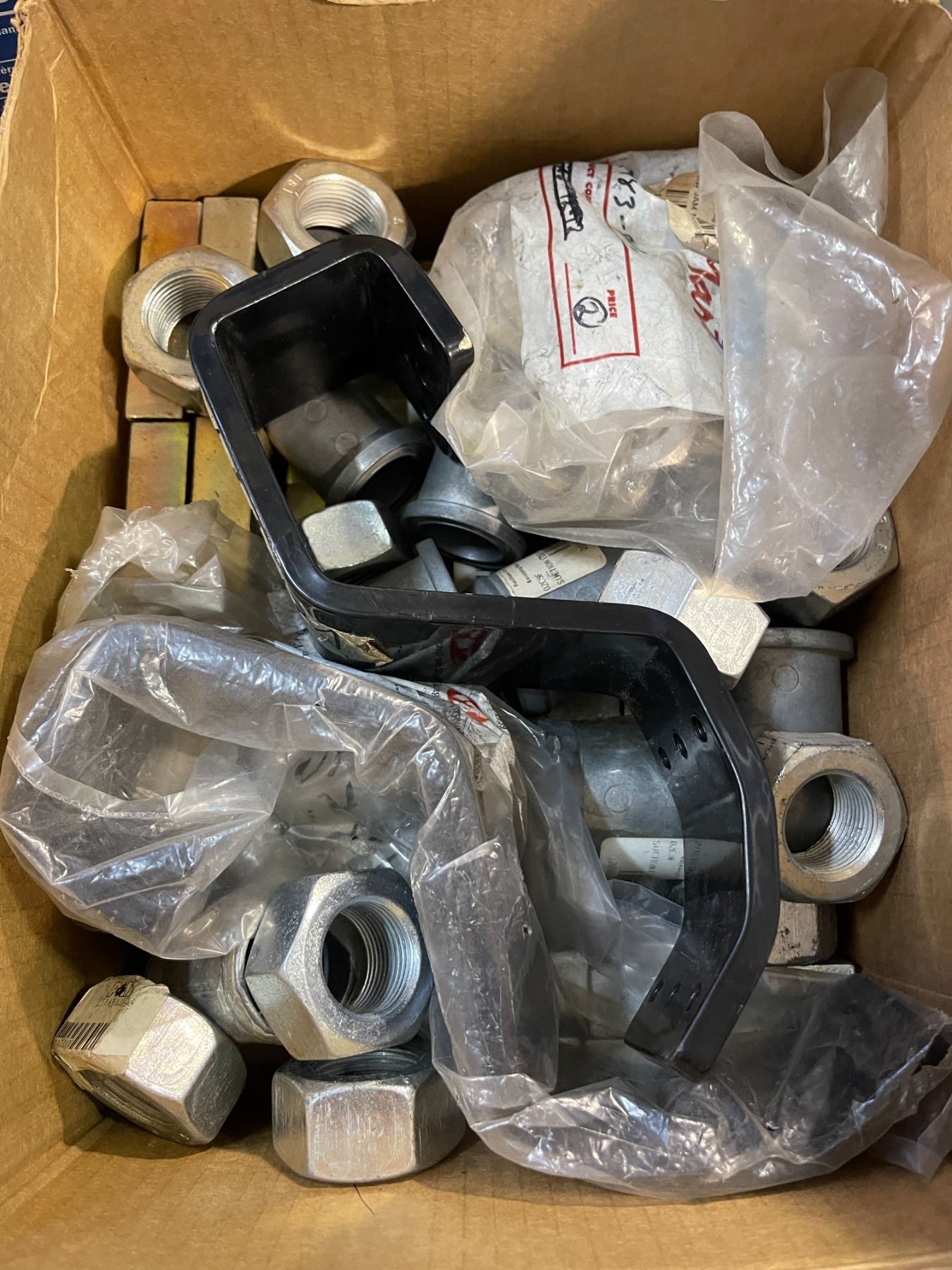 2 boxes of assorted parts - includes valve / clamp / rope bracket / MTG plate etc