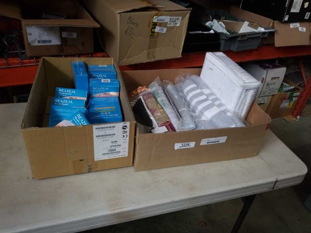 2 boxes of new duvet set, linens and rezeal mouthguards