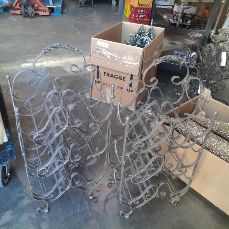 2 decorative metal wine bottle racks