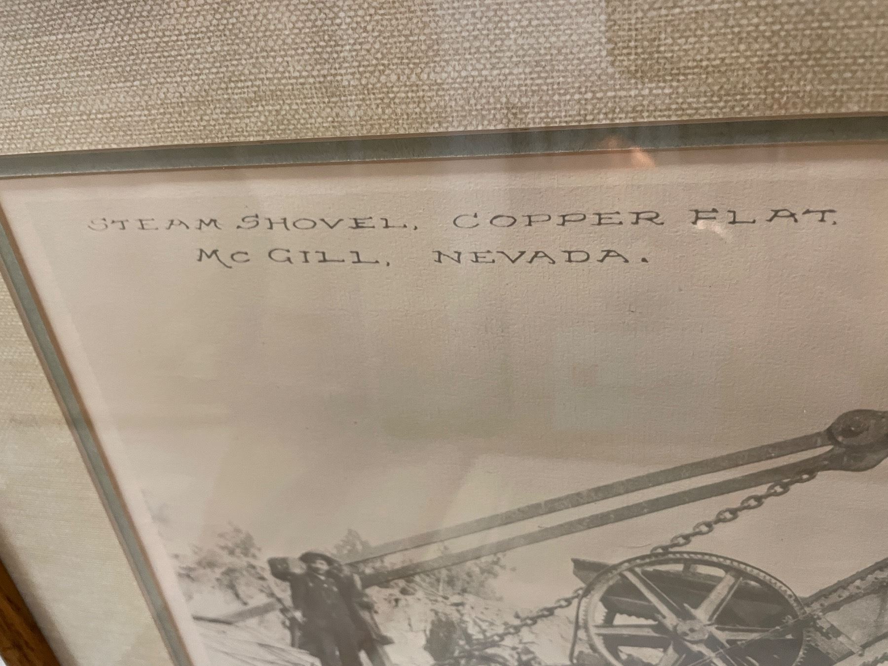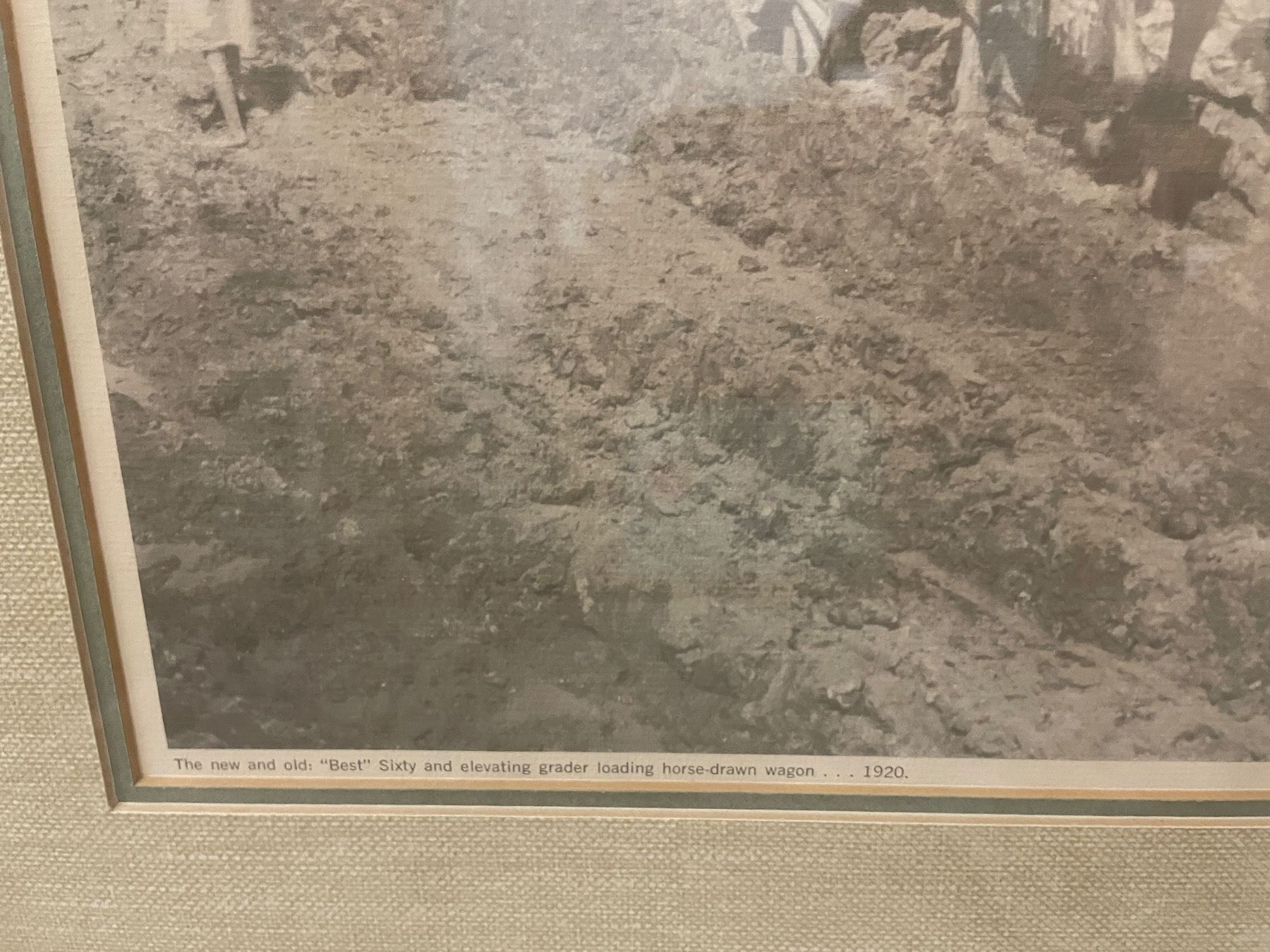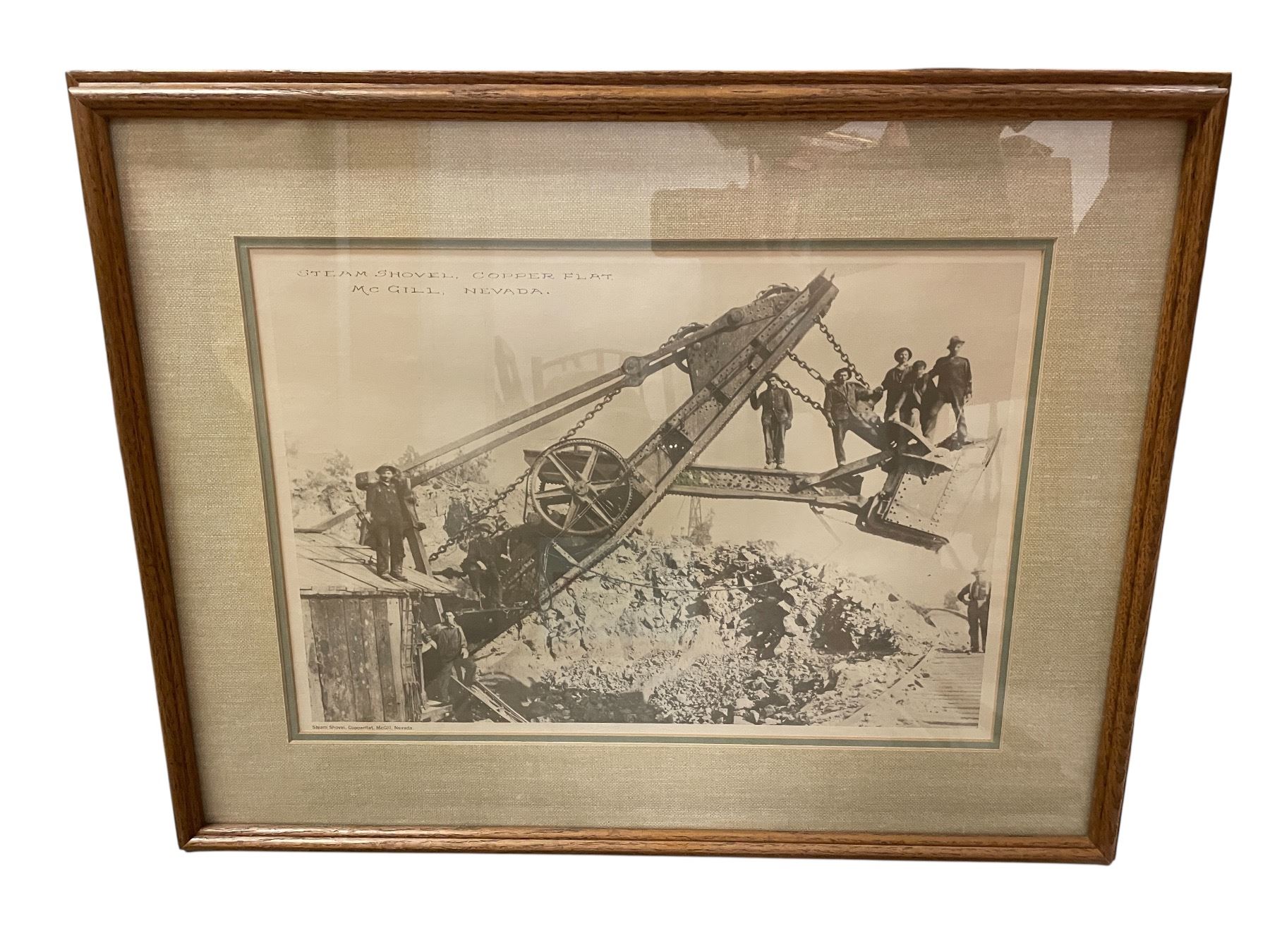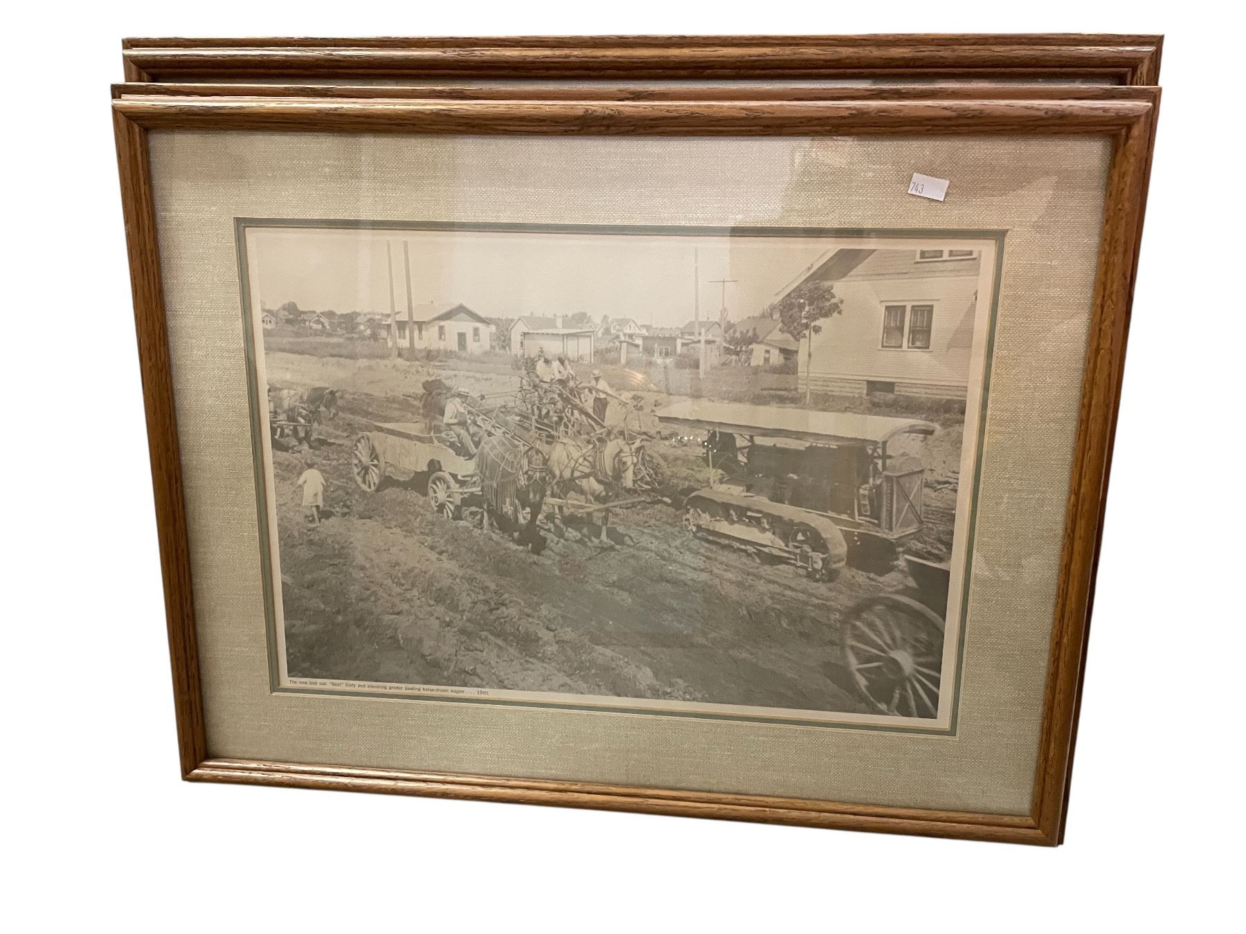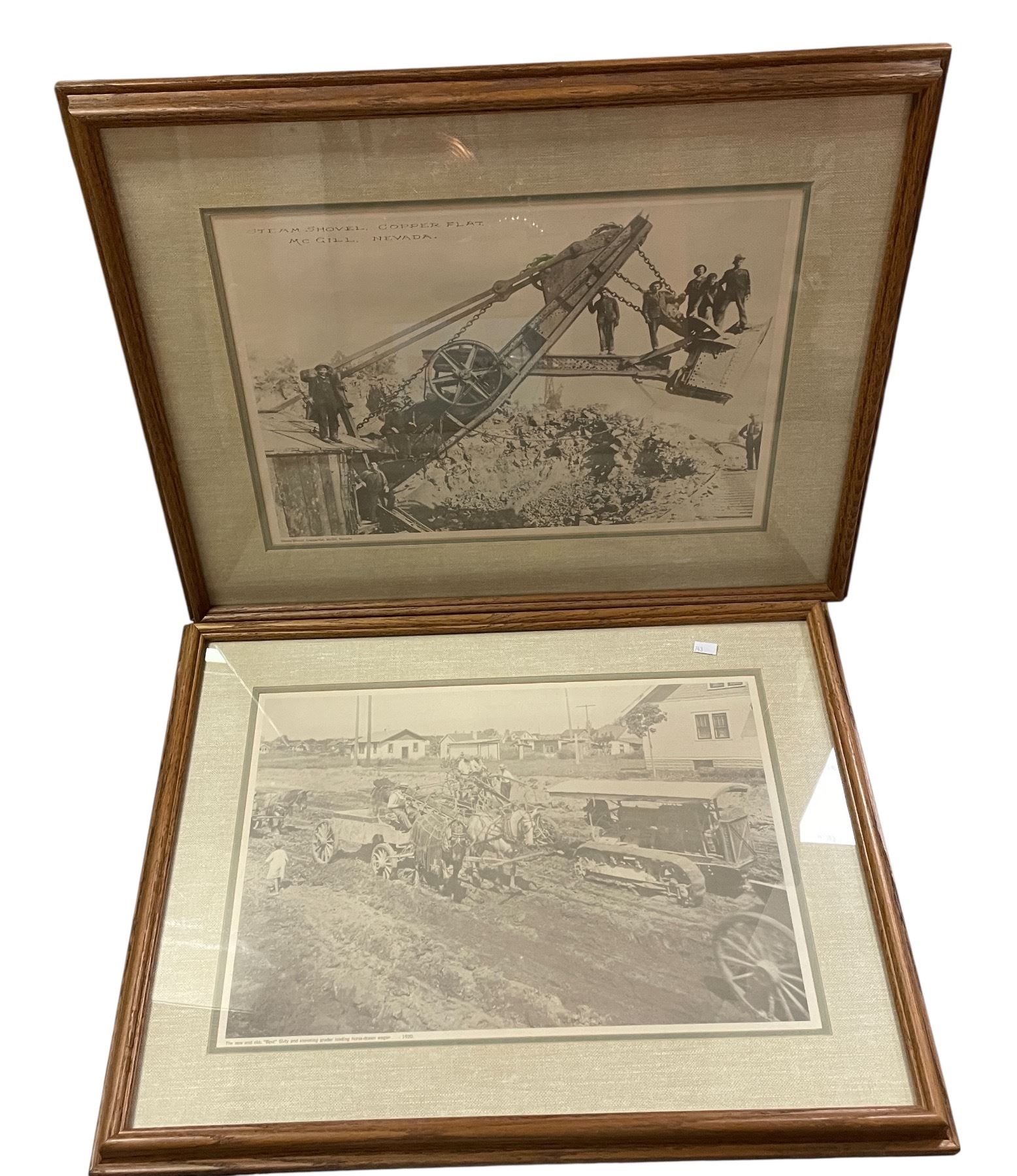 2 pc - Framed vintage pictures of a Steam Shovel in Nevada & Horse drawn wagon in1920