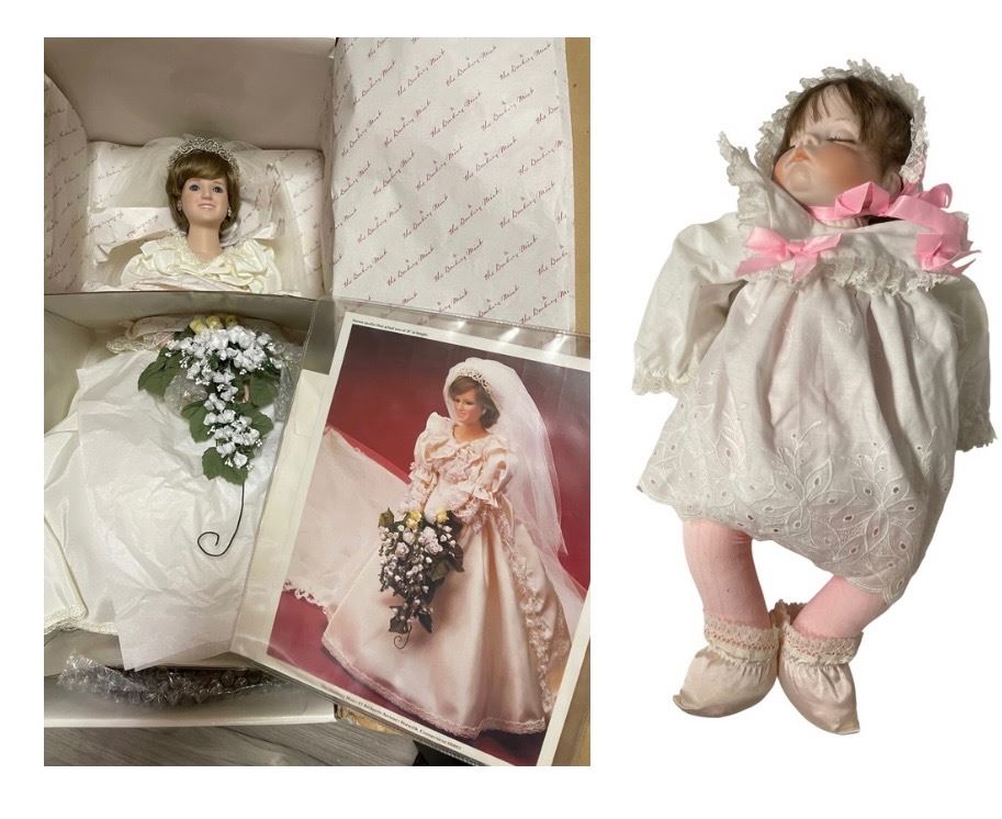 2 pc - Princess Diana bride doll by the Danbury Mint in original box w/ original paperwork & weighted baby doll