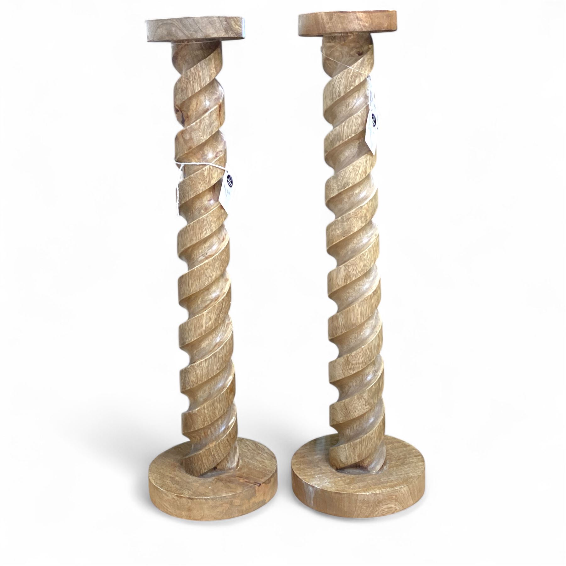 2-pcs Natural Wood Pillar Candle Holders Decor - approx. 2ft High each, Total Retail Value $ 199.100
