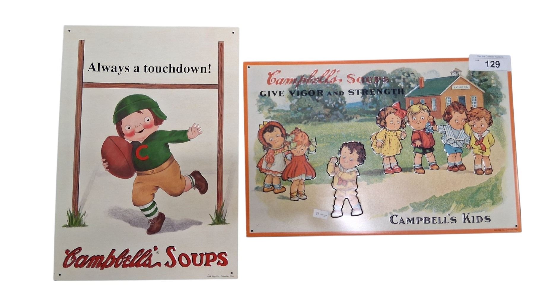 2 reproduction Campbell's Soup signs, metal, 15"x10" each