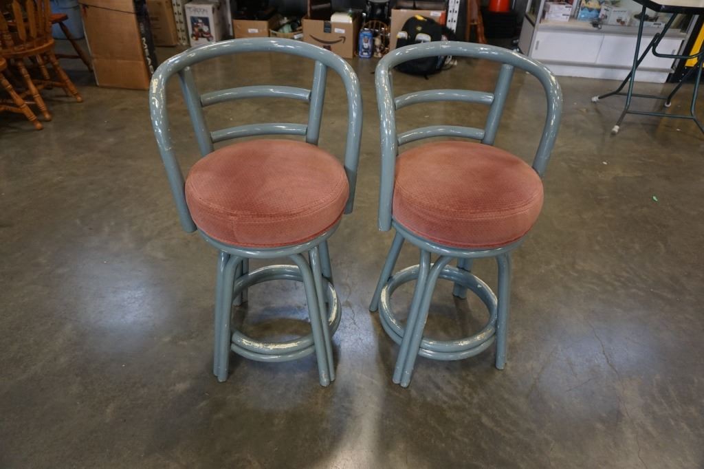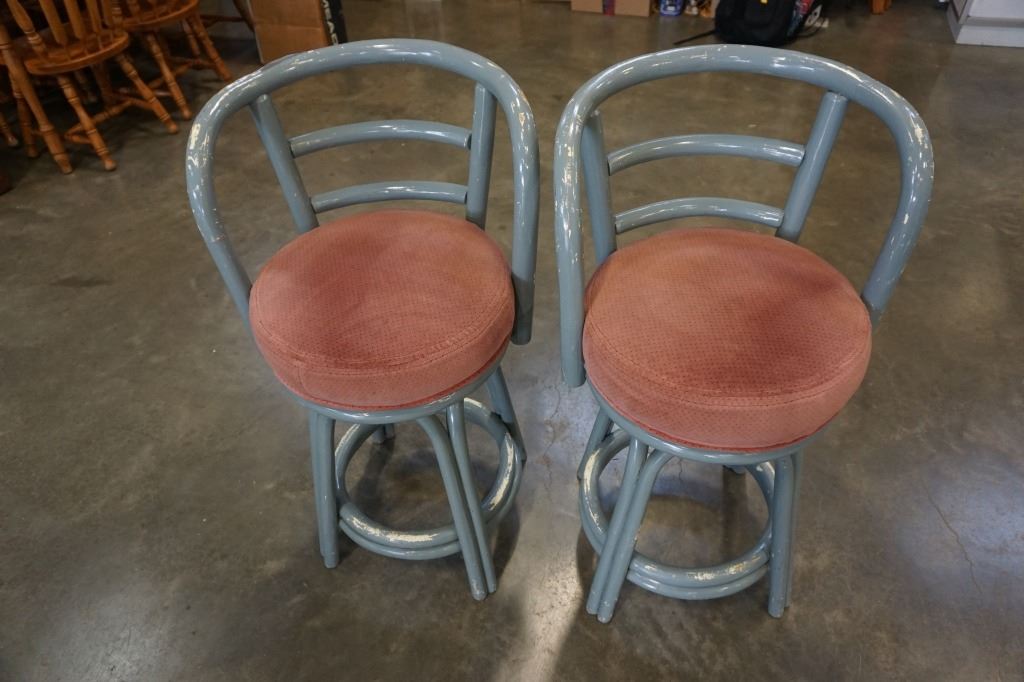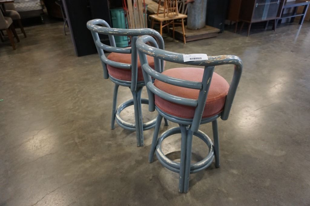 2 rustic bent bamboo bar stools