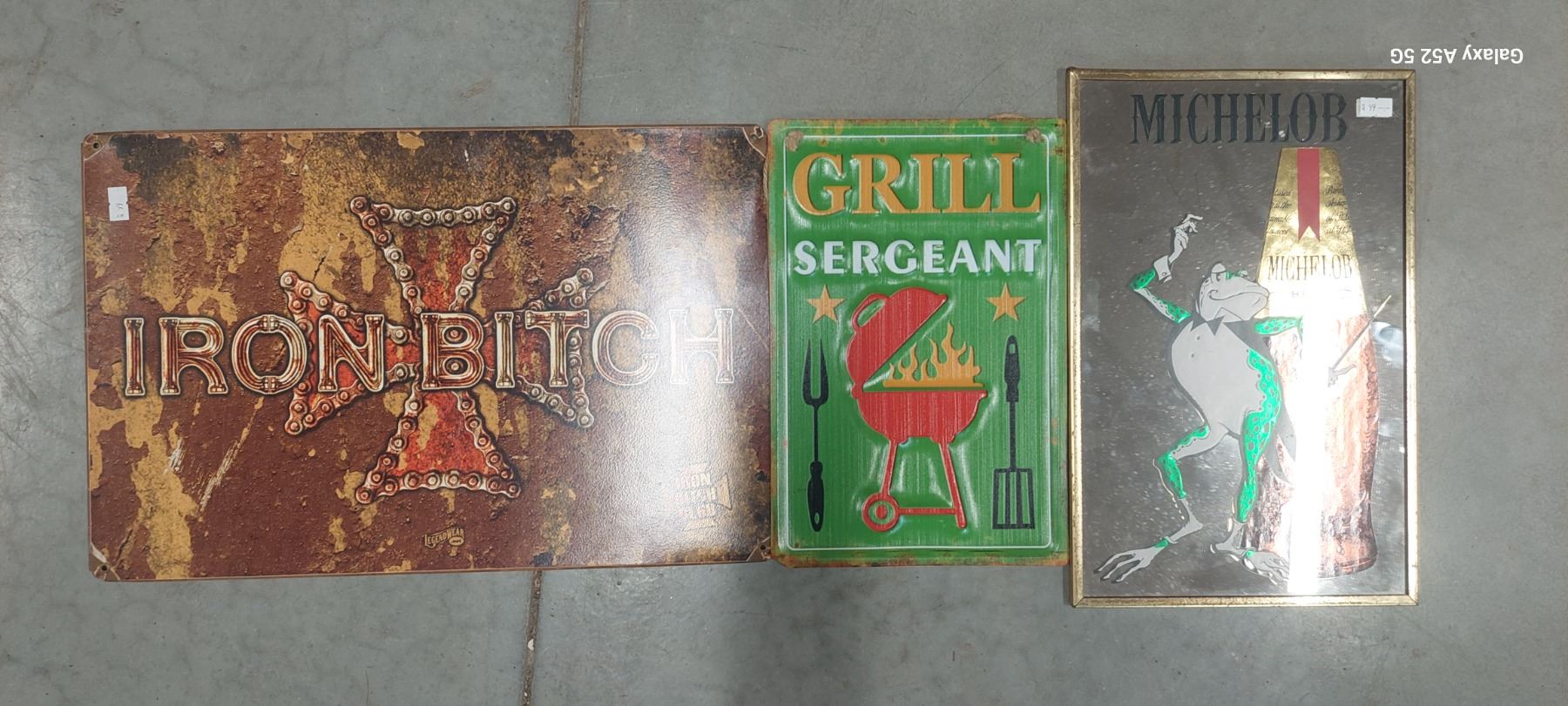 2 tinreproduction signs, and 1 Michelob glass mirror